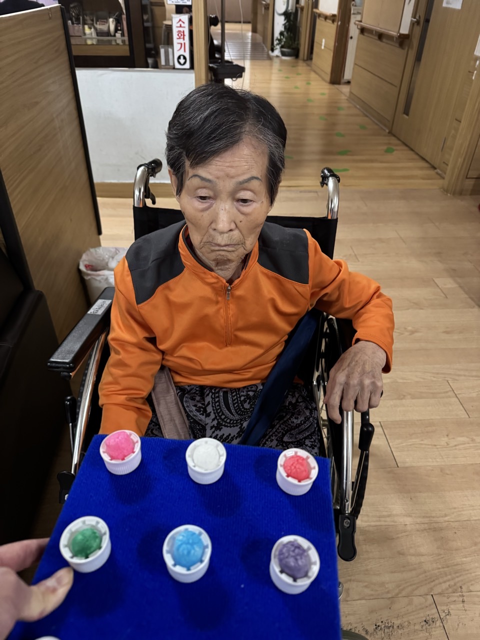 ③ 앞에 선생님이 하시는 것을 보고 따라 하실 수 있도록 유도 한다.