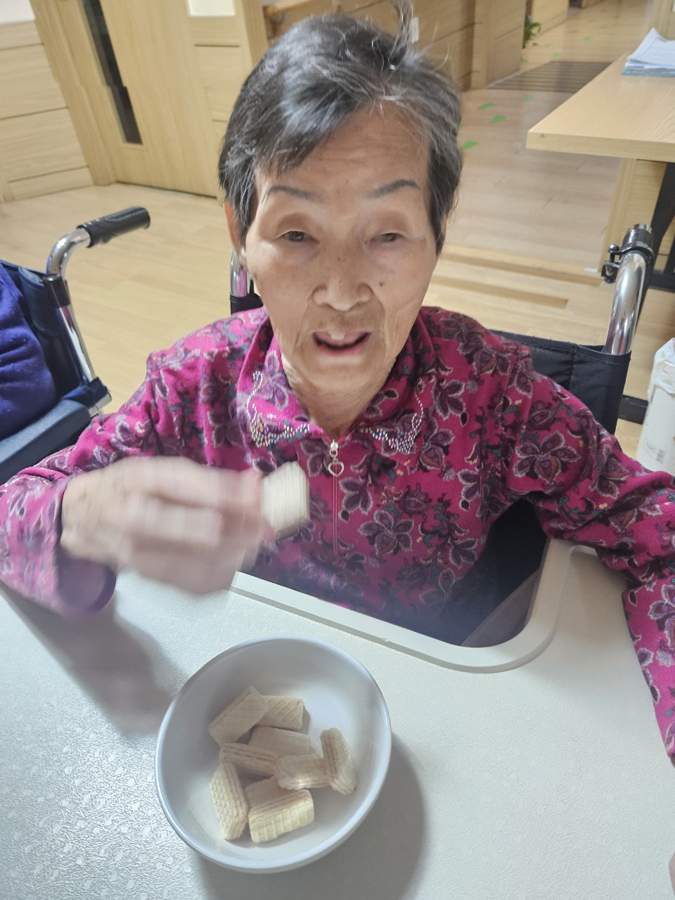 0411(금) 초지어르신들 야간 간식은 딸기 웨하스입니다 좋은밤되세요^^♡