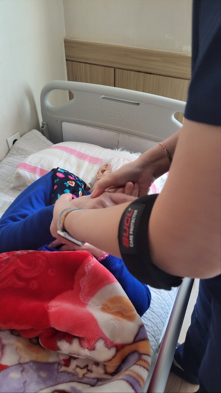 ④ 혈액순환을 위해 손바닥 전체를 누르며 마사지 한다.