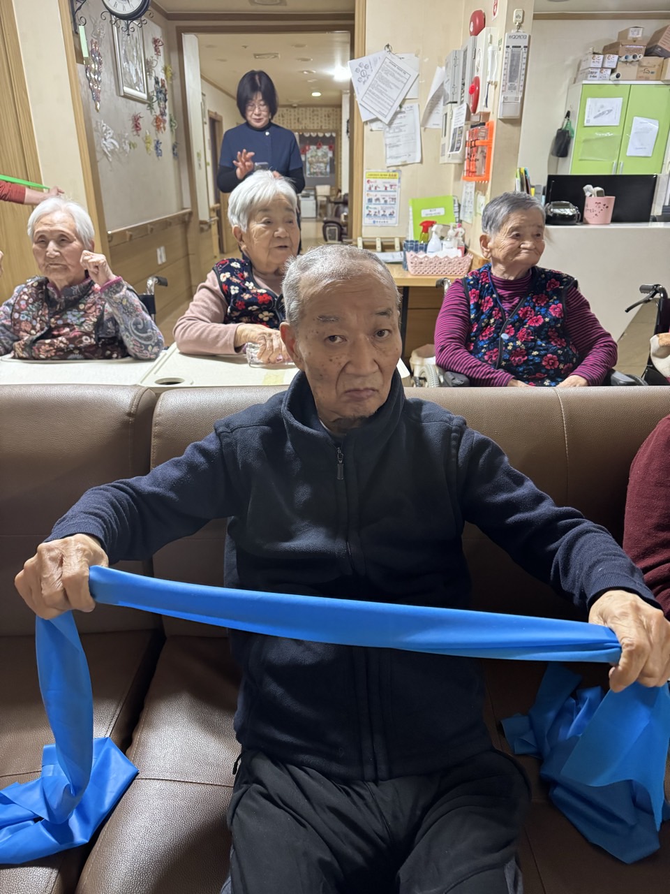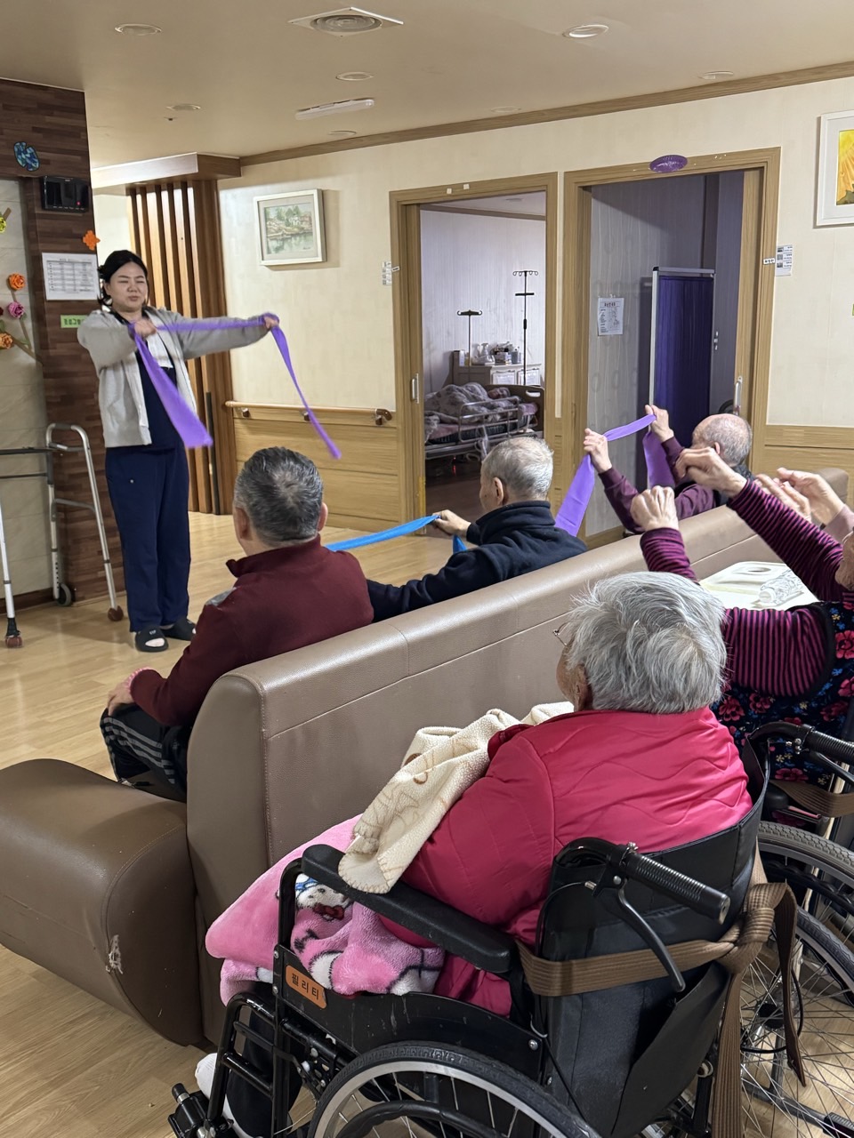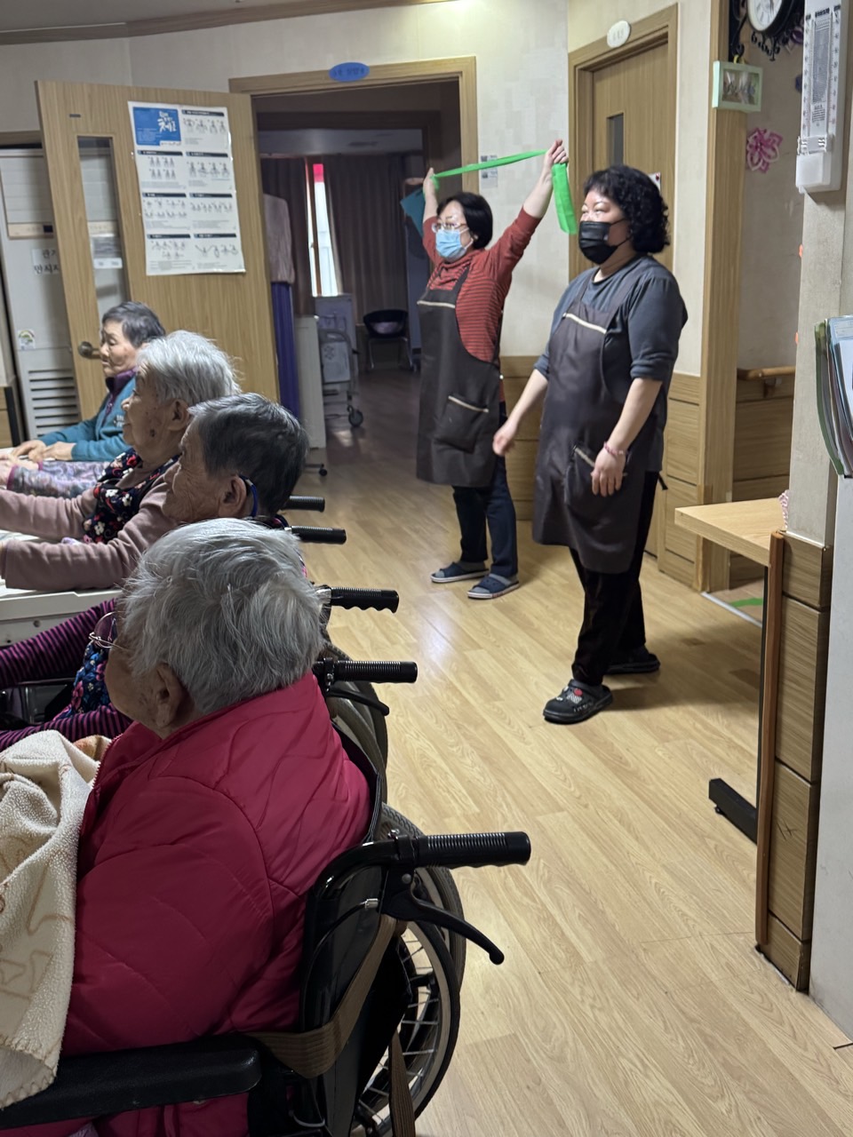 ② 어르신들에게 탄성밴드를 배분해 드린다.