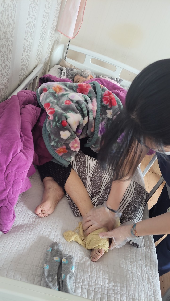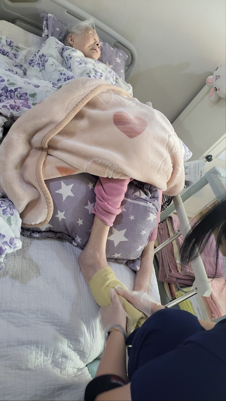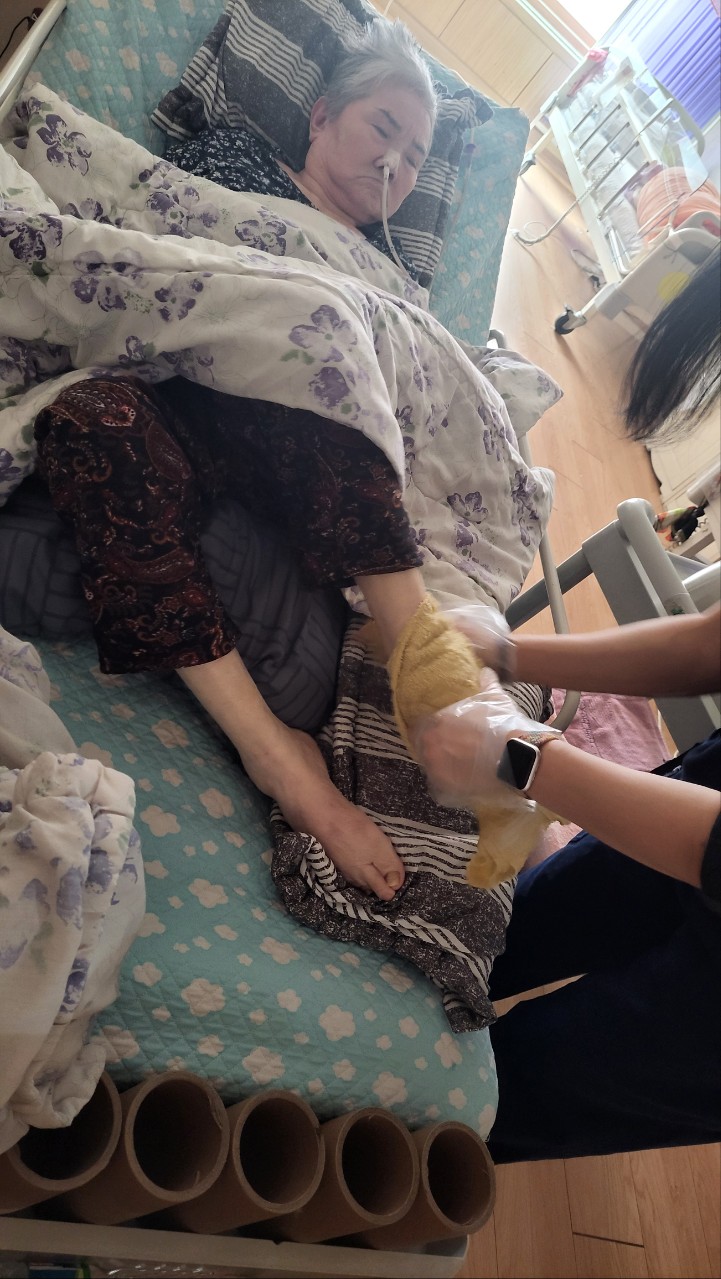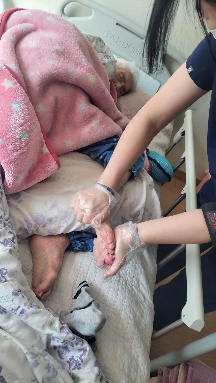 ⑤ 혈액순환을 위해 용천부위를 누르며 마사지한다.