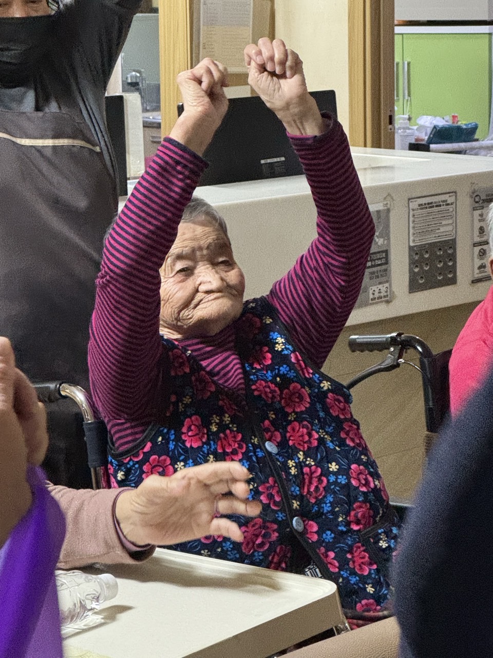 ④ 옆에서 어르신을 격려해 드리고 힘든 부분은 옆에서 도와드린다.