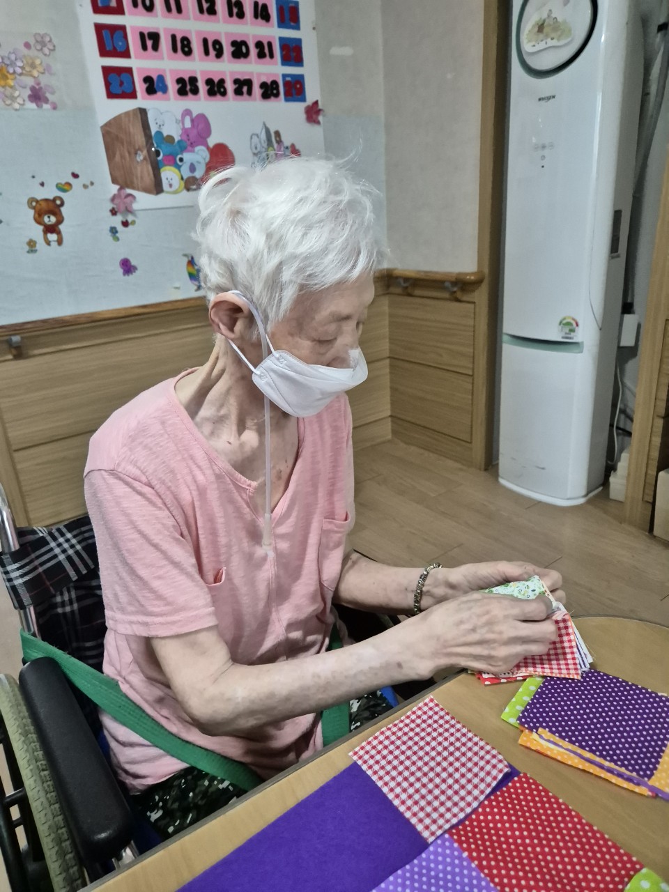다양한 무늬의 색깔천을 매트위에 올려 나만의 멋진 디자이너