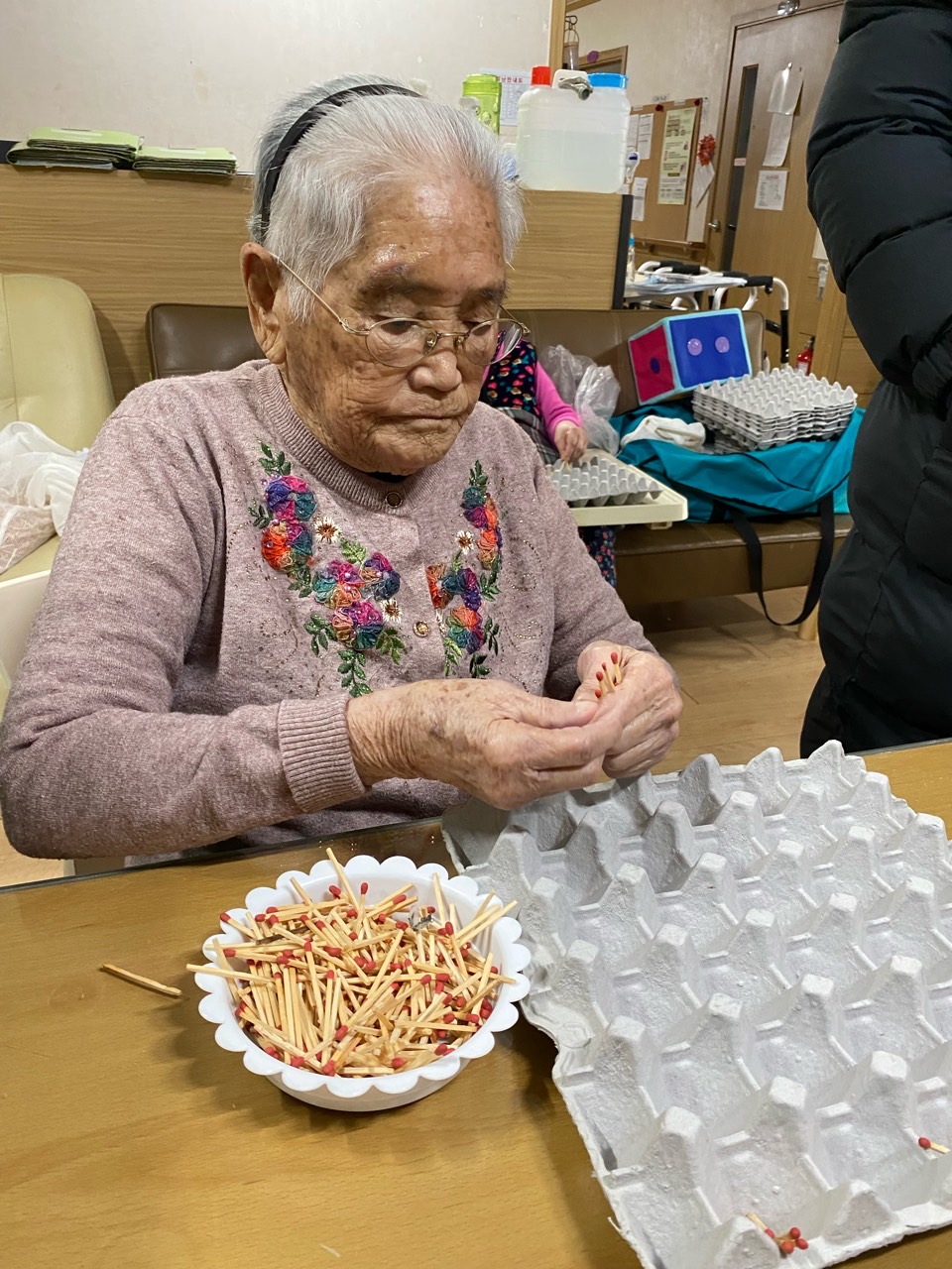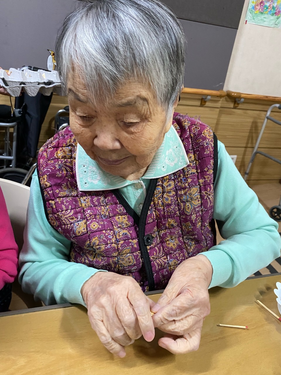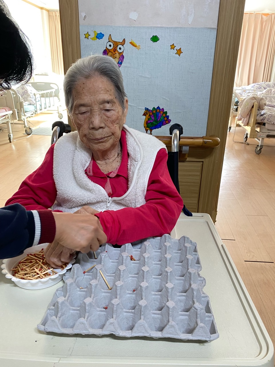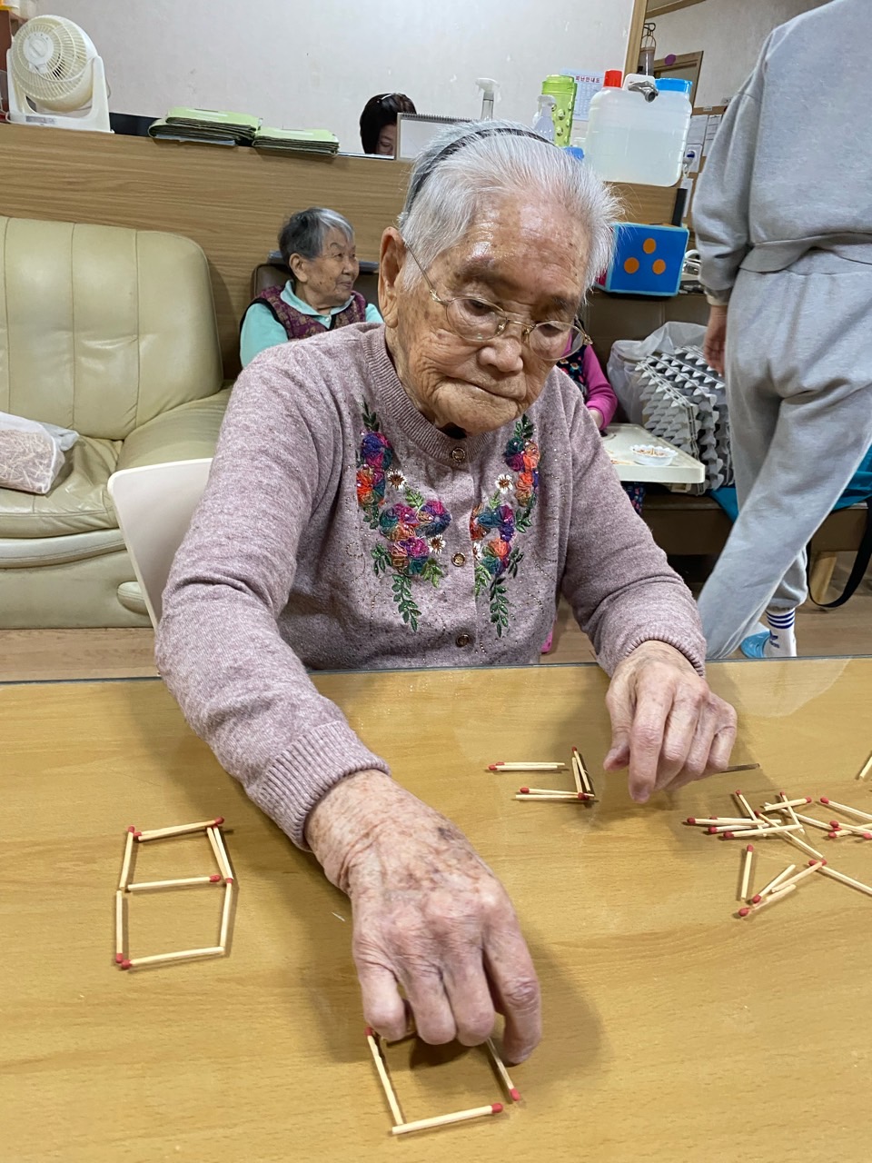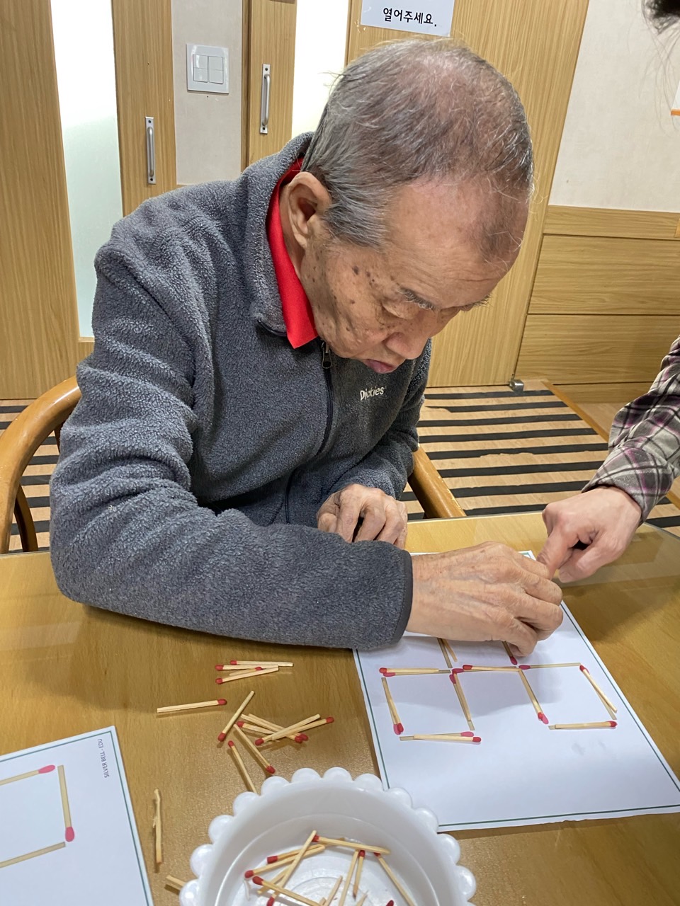 성냥으로 다양한 구성물을 완성해보도록 하여 대상자의 성취감을 충족시키고 손의 근육조직을 발달시킨다.