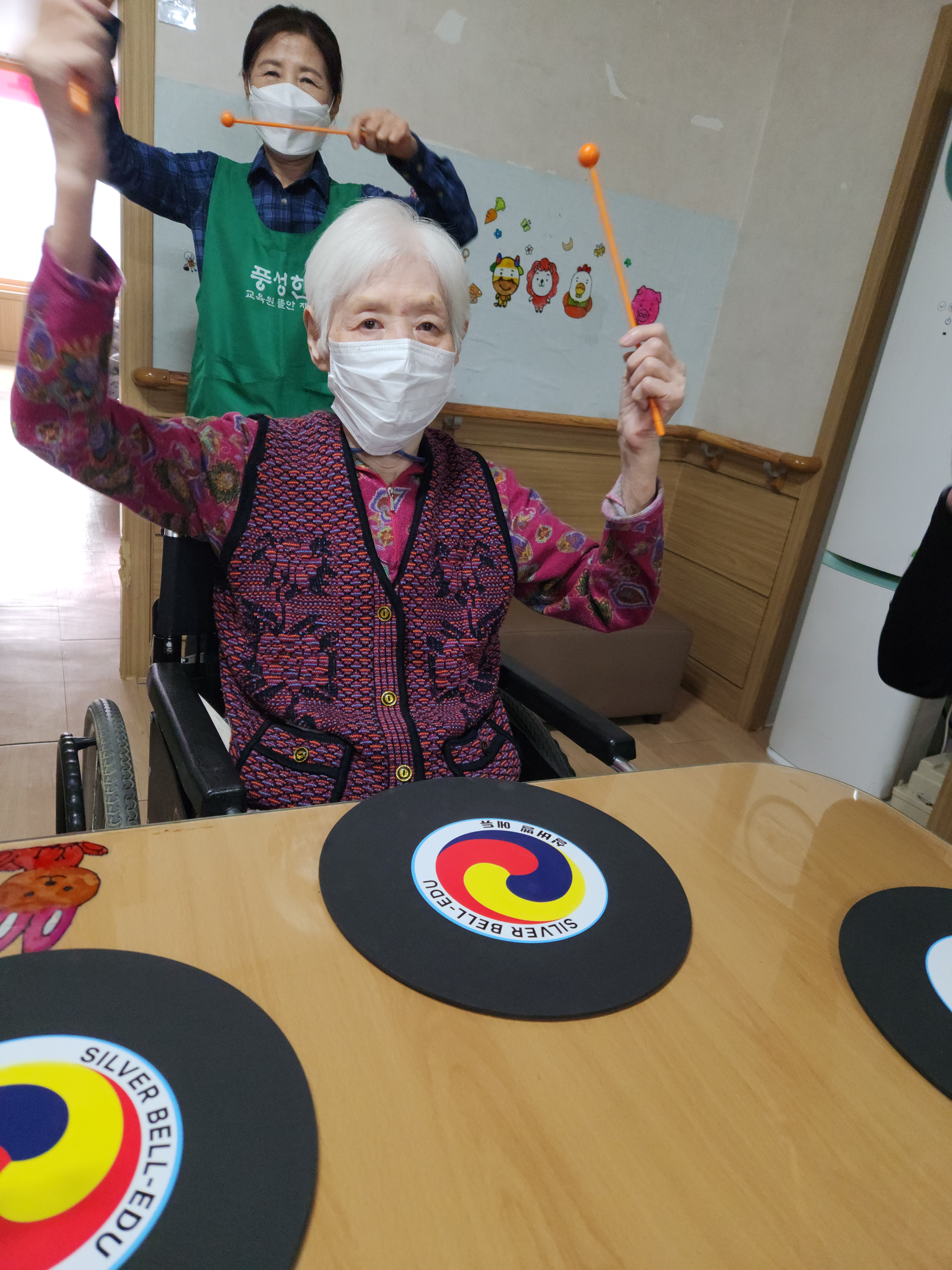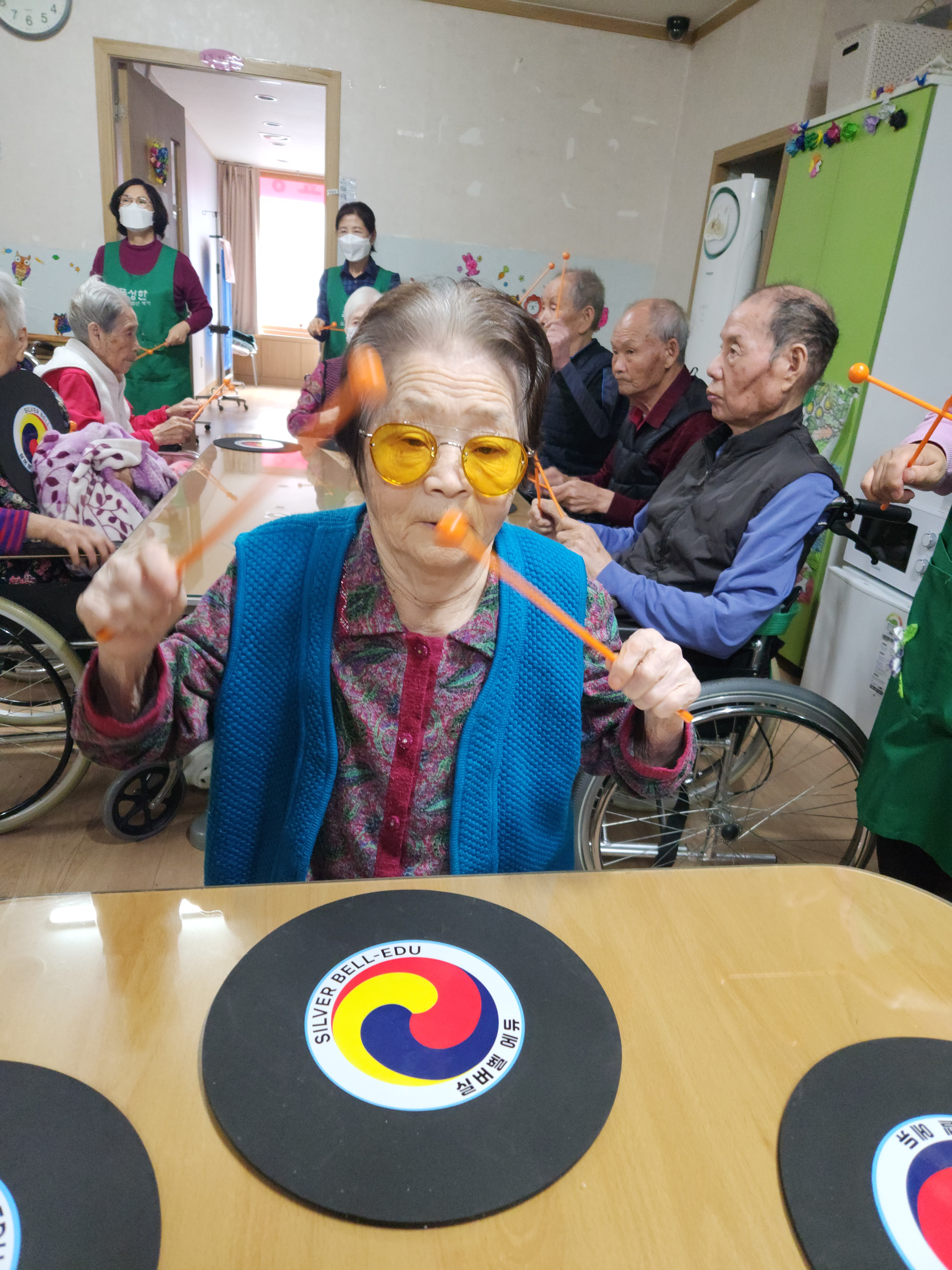 타법에 맞게 연주하고 손유희활동으로 감각기관을 자극시켜주고 감정표현들을 돕는다