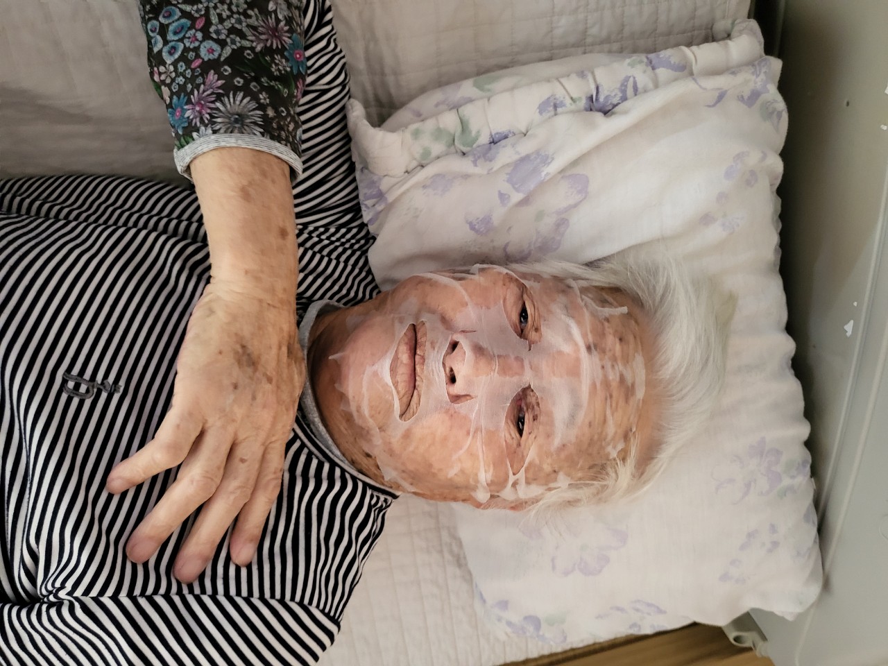 마스크 팩을 붙이시고 여가를 즐긴다.