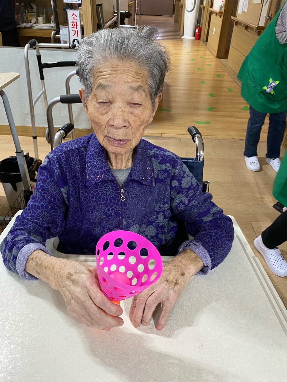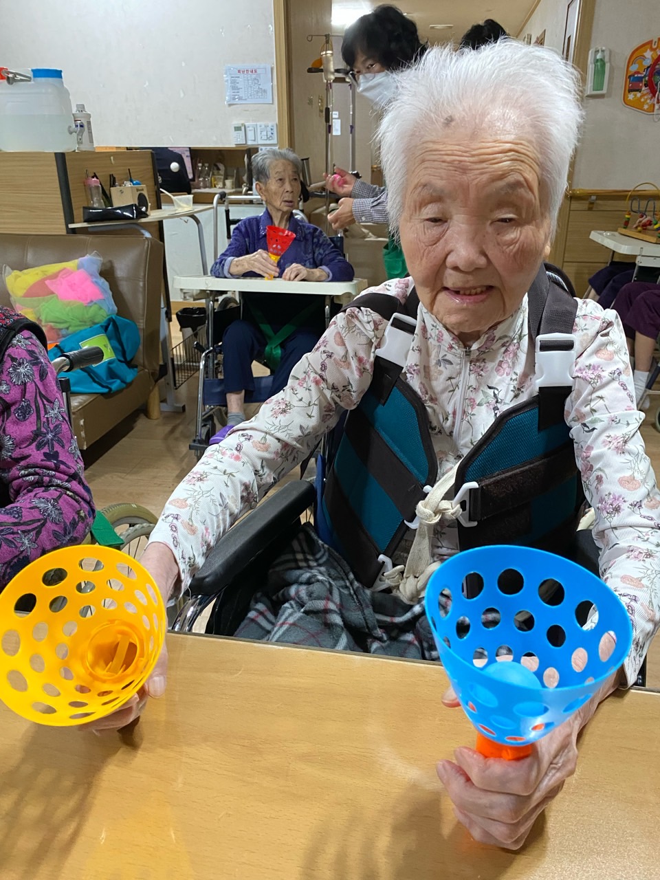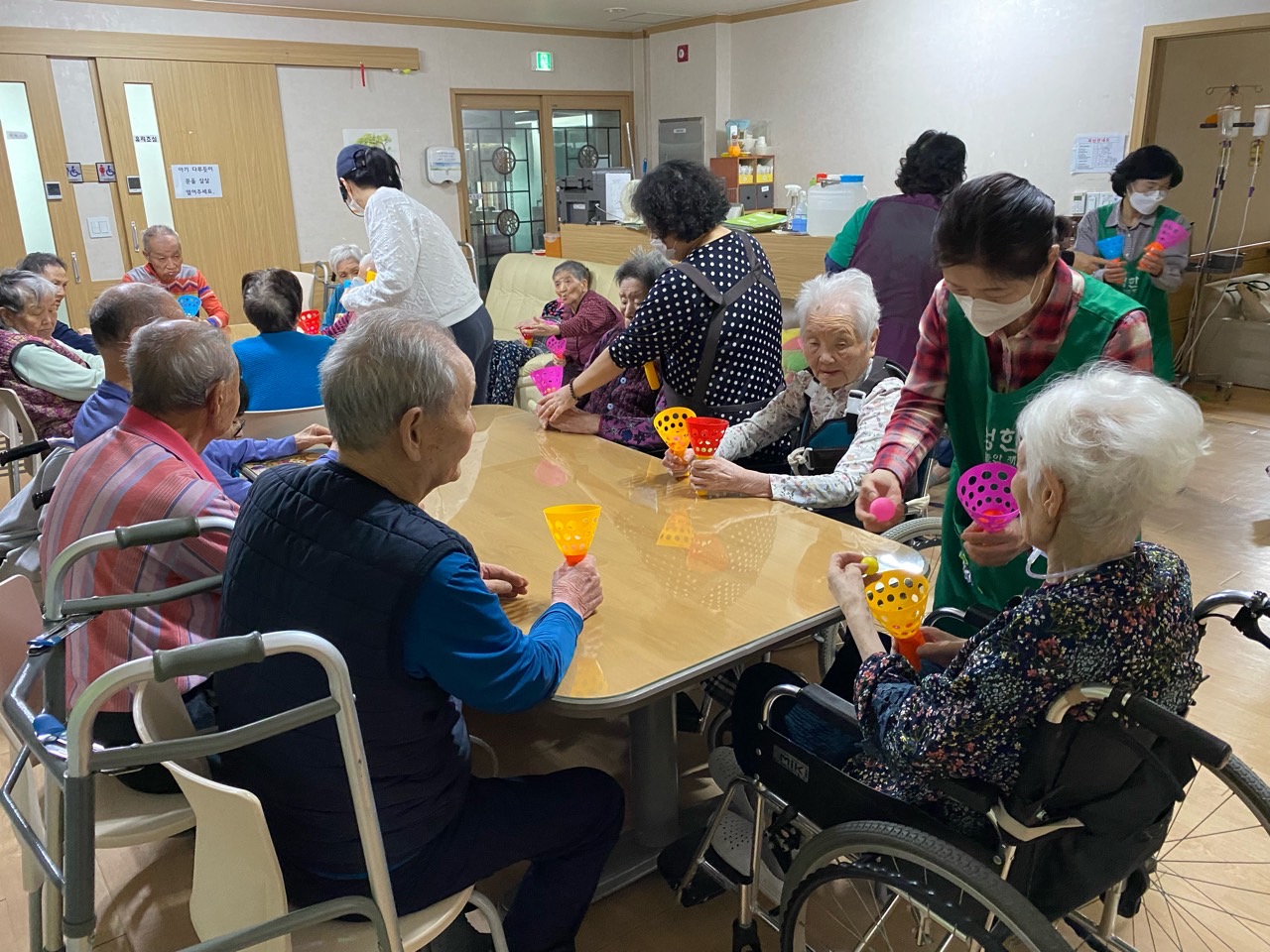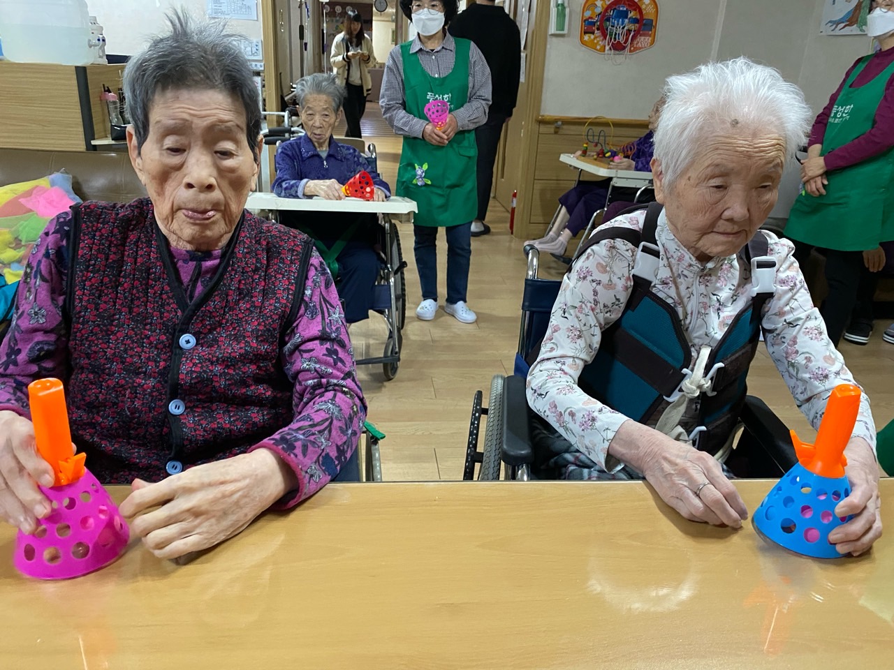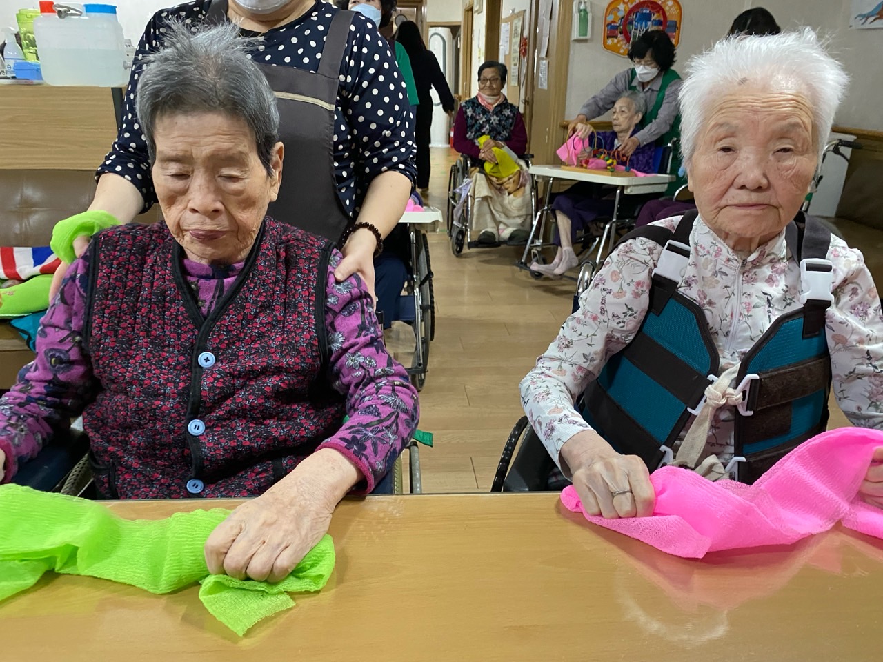 1. 어르신들의 얼굴을 물수건으로 닦아드린다.