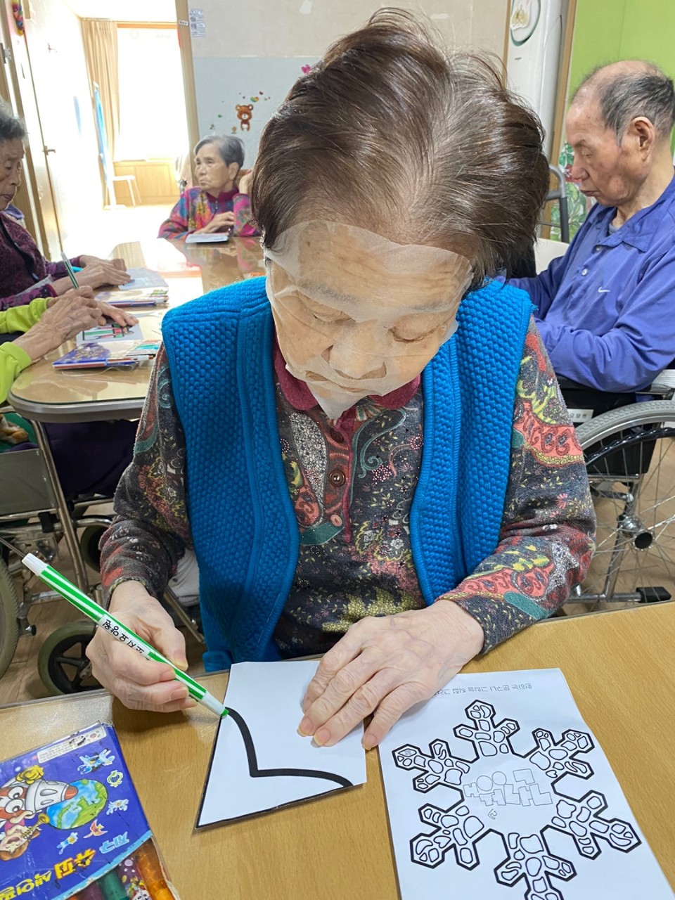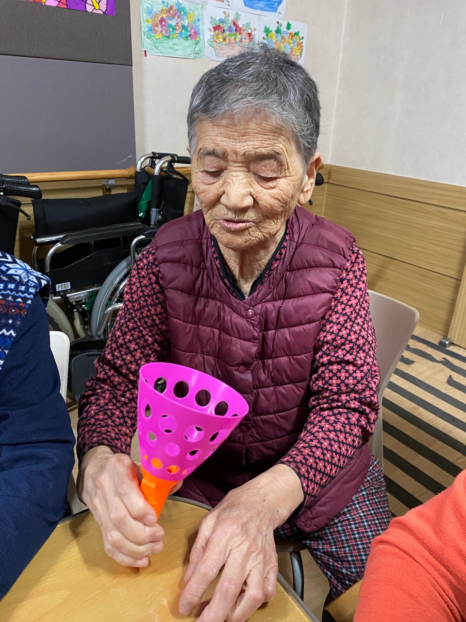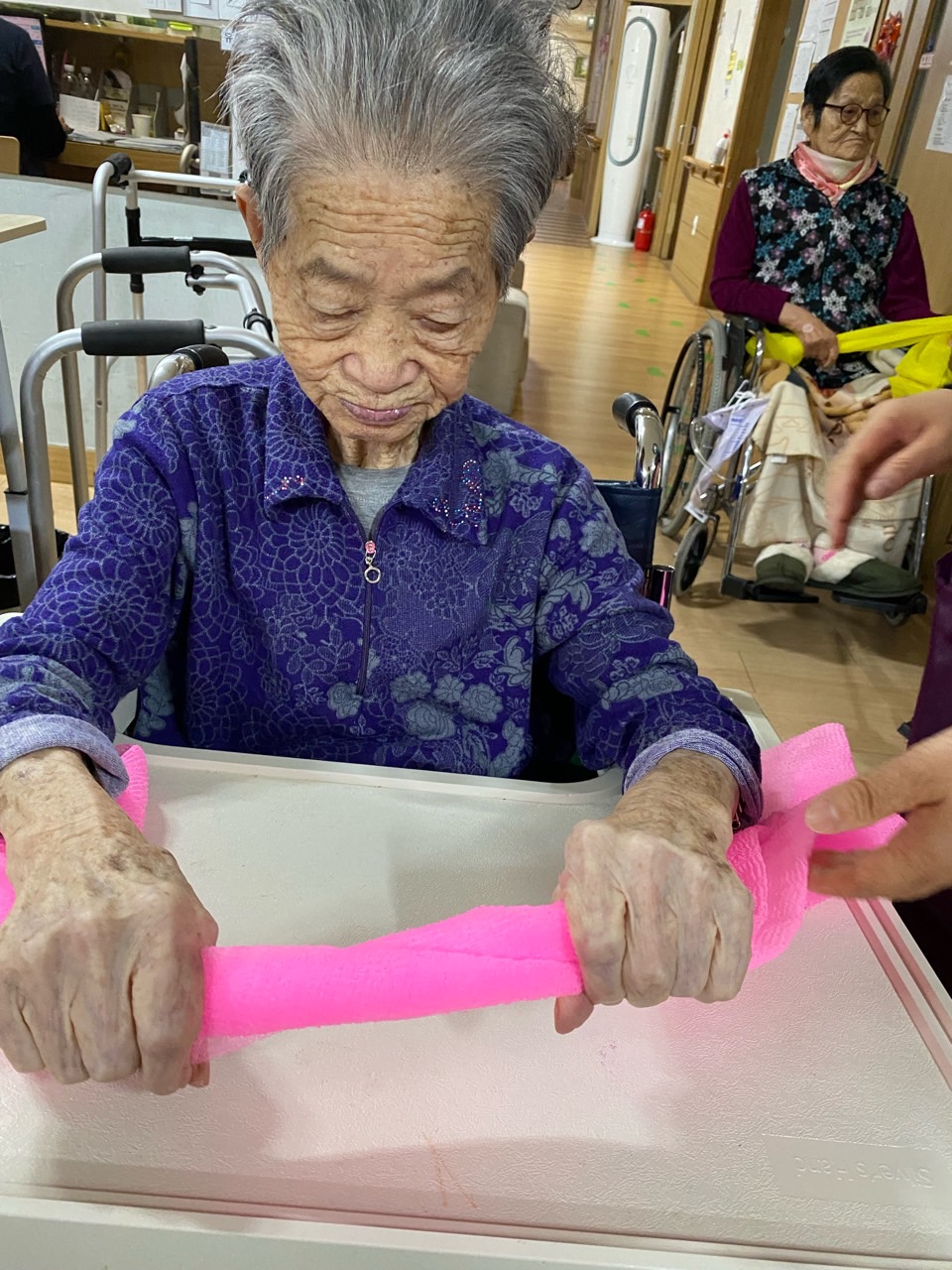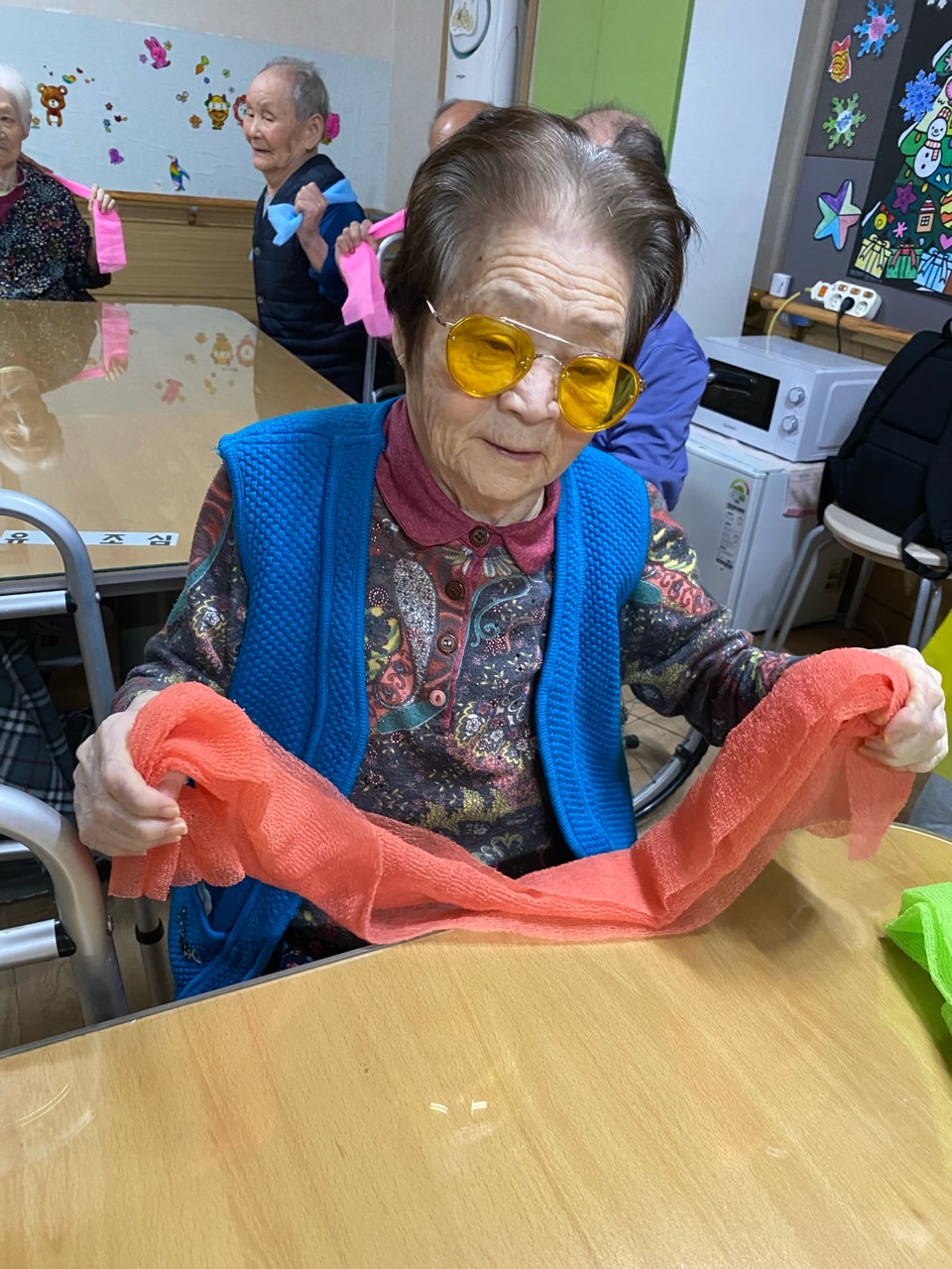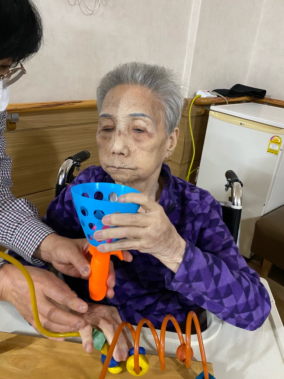 1. 어르신들의 얼굴을 물수건으로 닦아드린다.