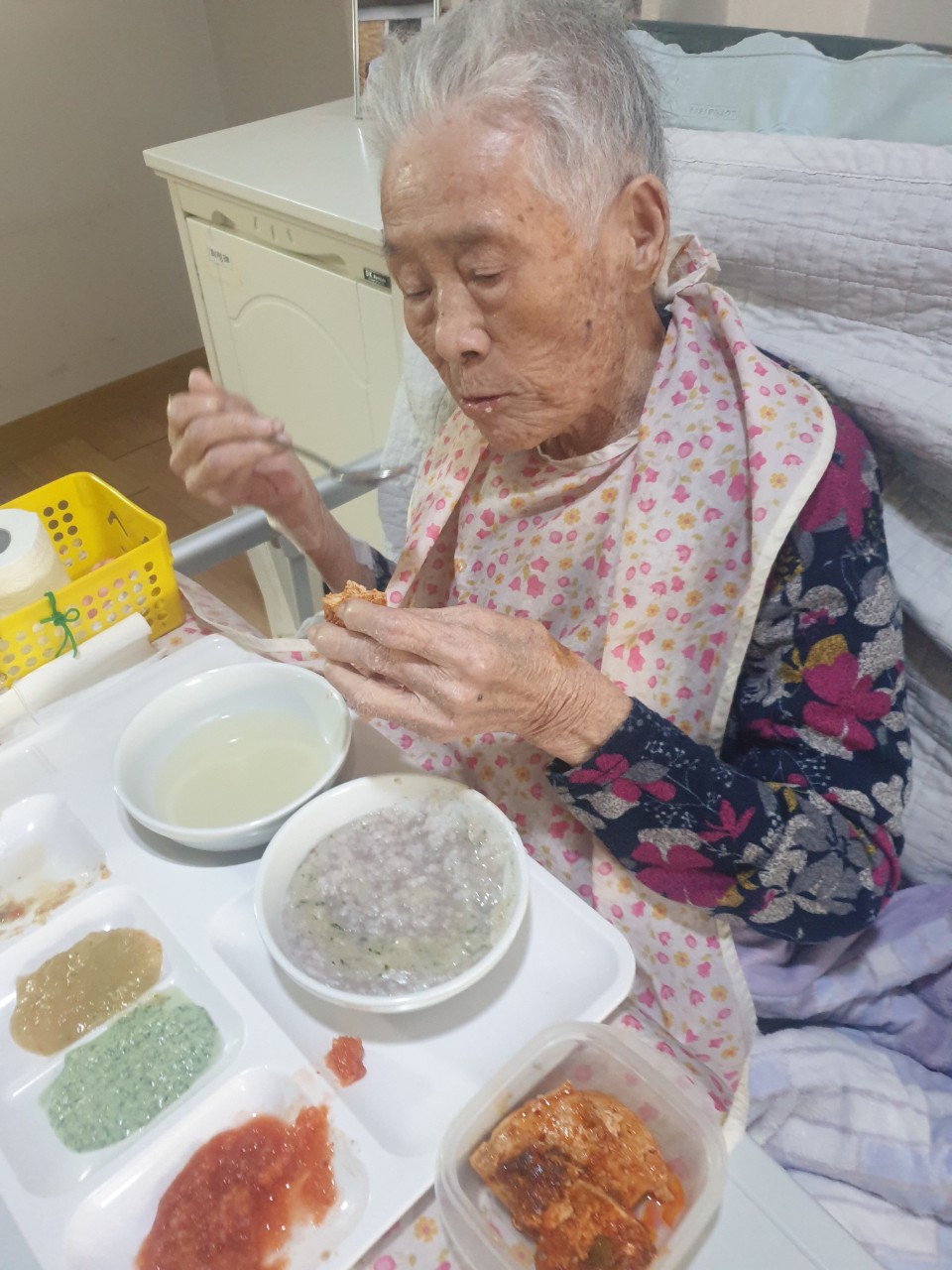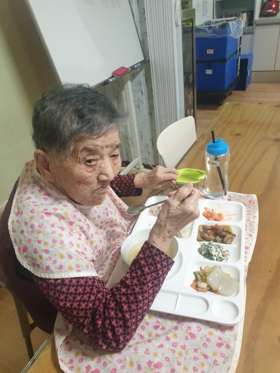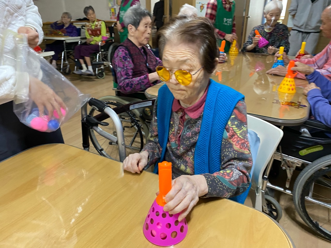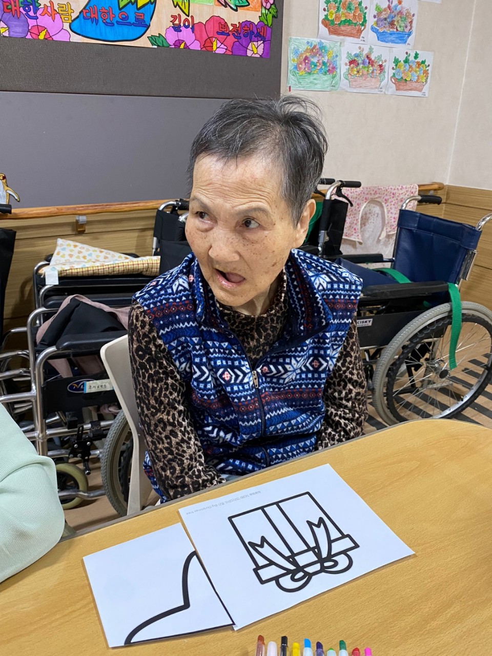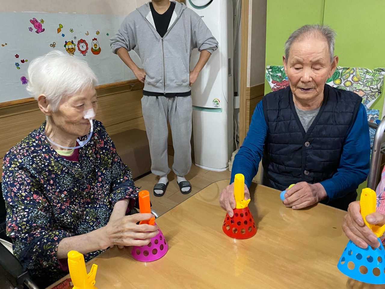 1. 어르신들의 얼굴을 물수건으로 닦아드린다.