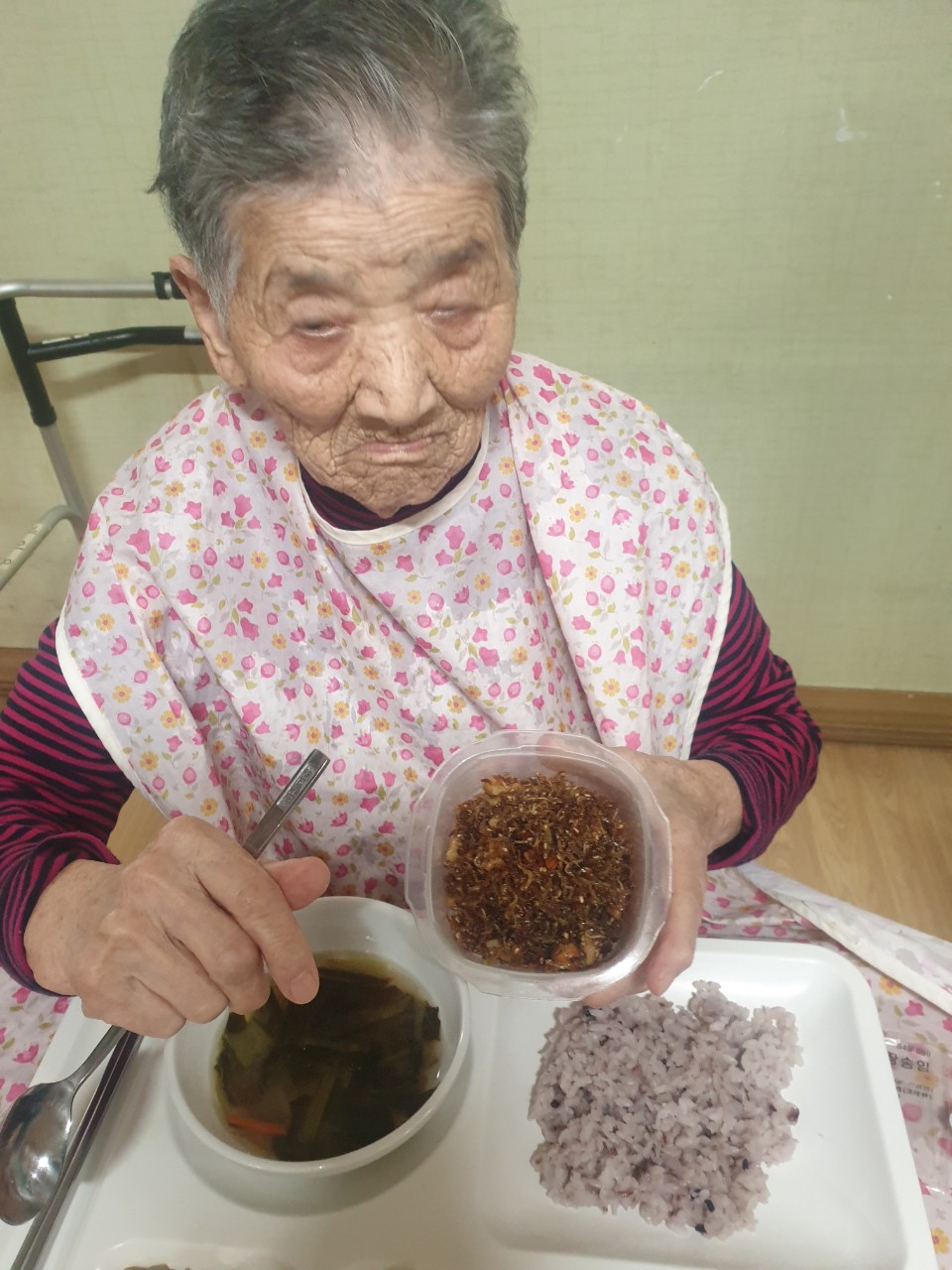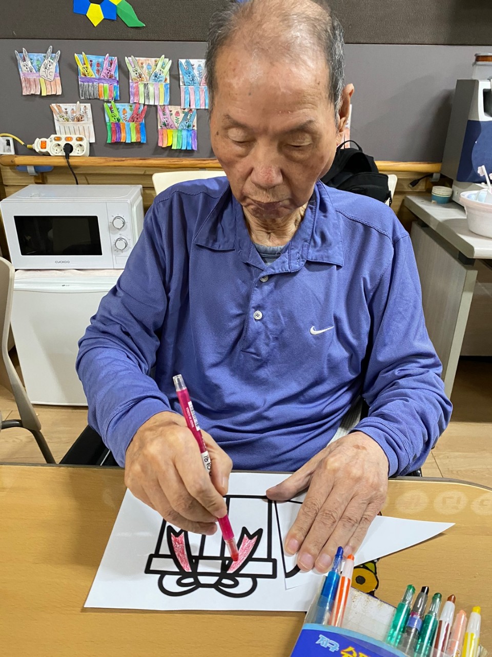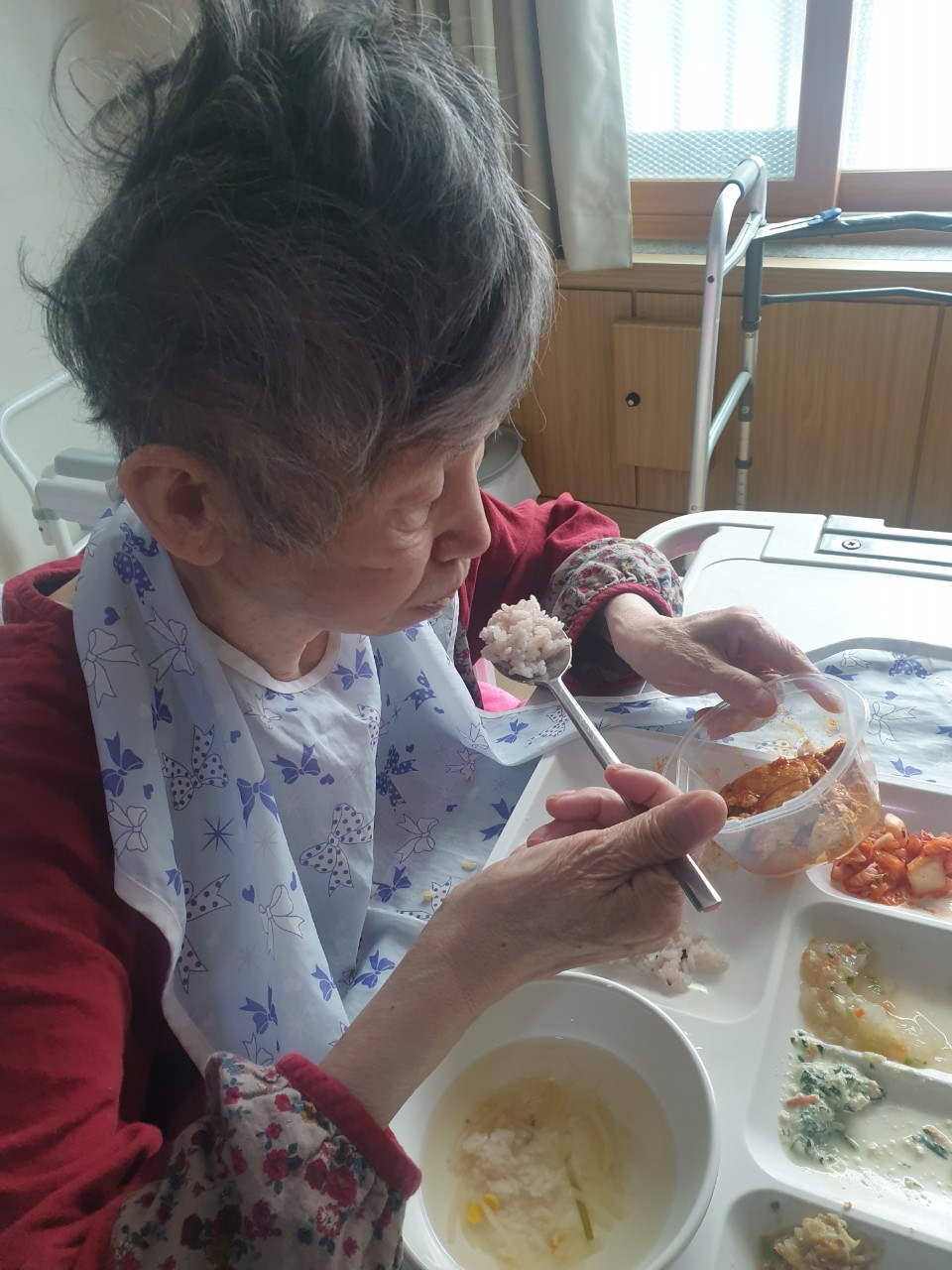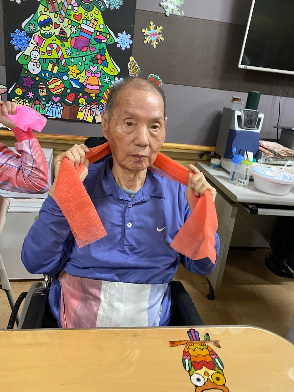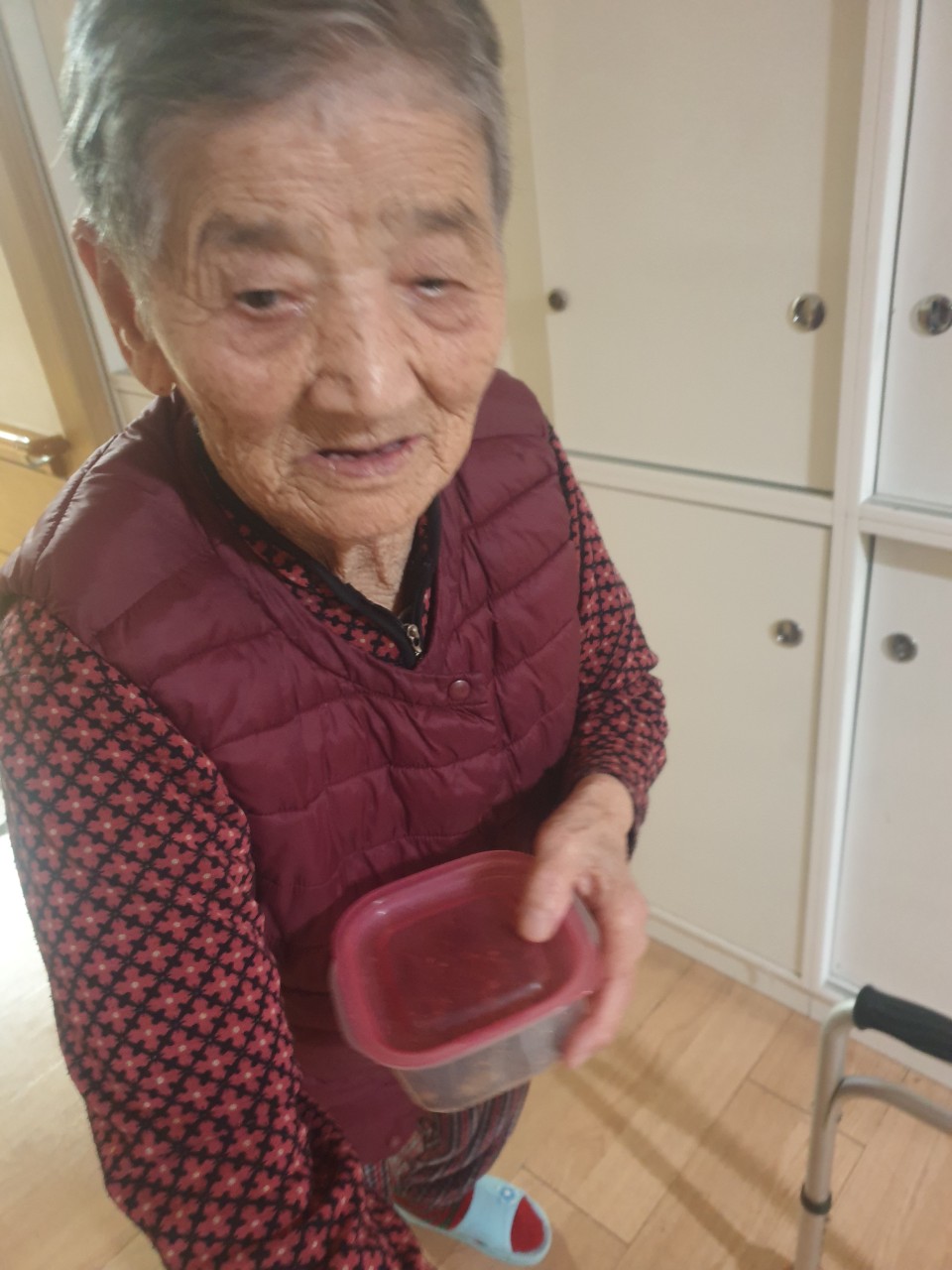 1. 어르신들의 얼굴을 물수건으로 닦아드린다.