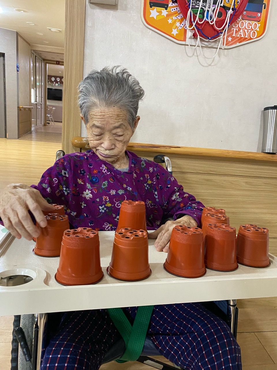 포트에 배양토를 넣고 행복꽂이를 꽂아 건강을 기원하는 놀이를 통해 창의적사고력이 좋아진다.