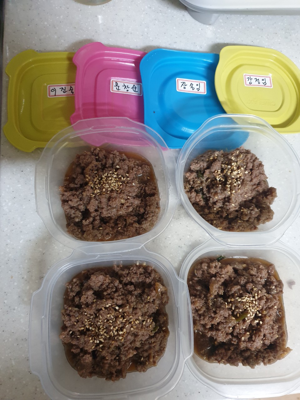 1027(금)초지수급자어르신들 특식 돼지양념제육볶음과 소고기볶음 입니다~ 맛있게드세요~♡