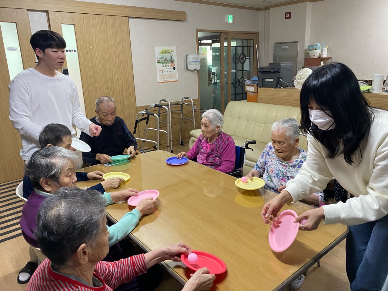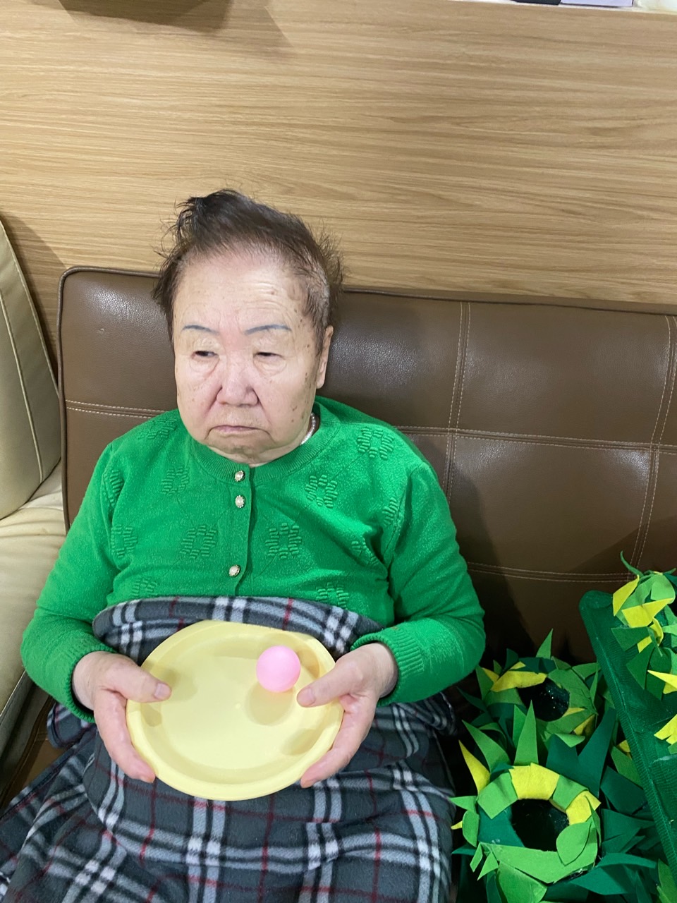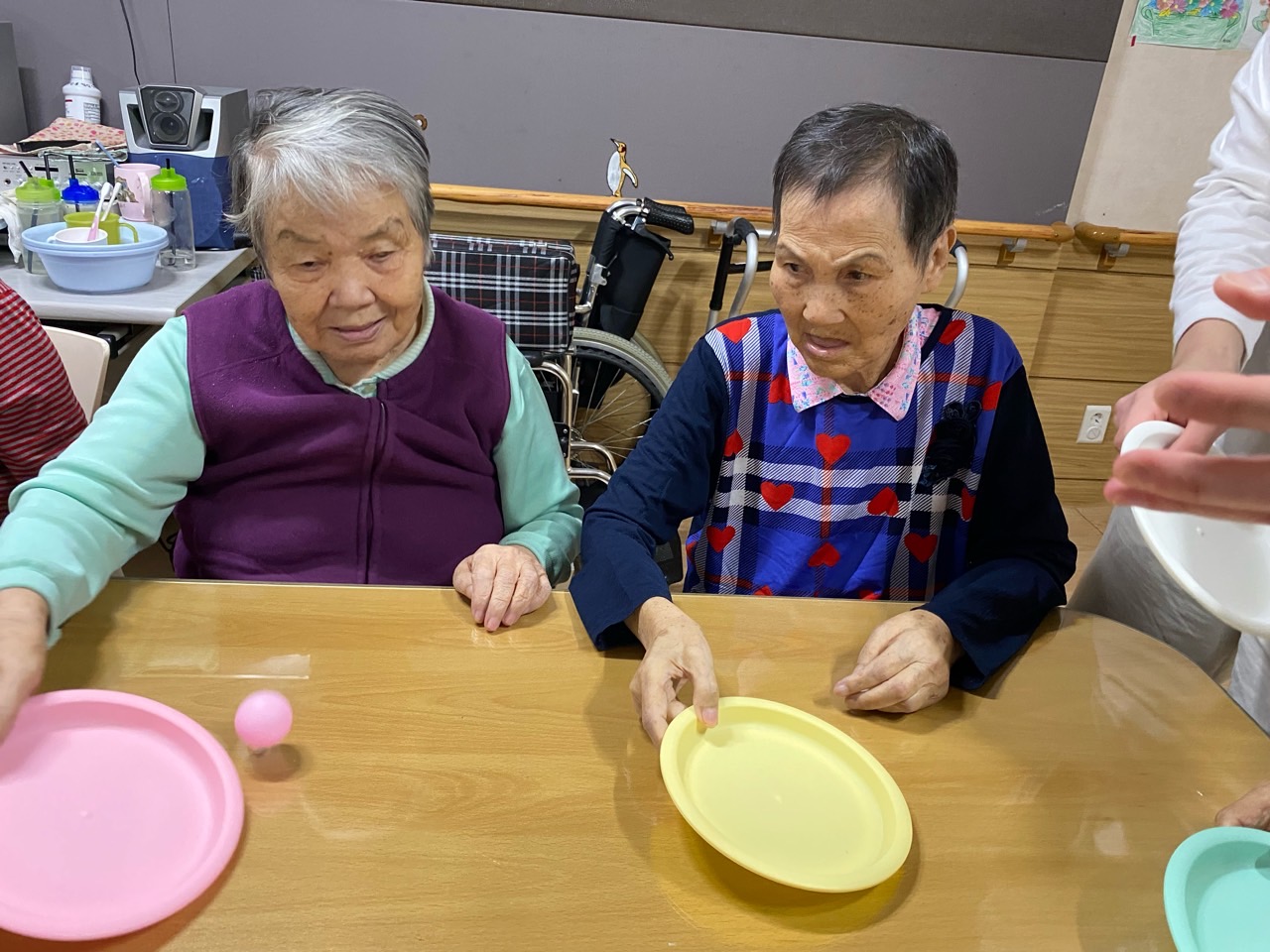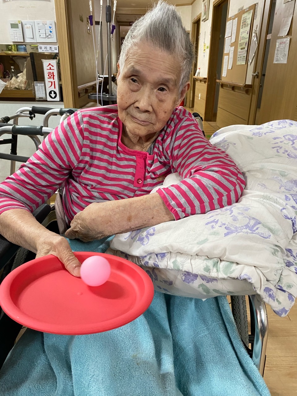 어르신들이 이제 탁구공 놀이를 제법 잘 하십니다.