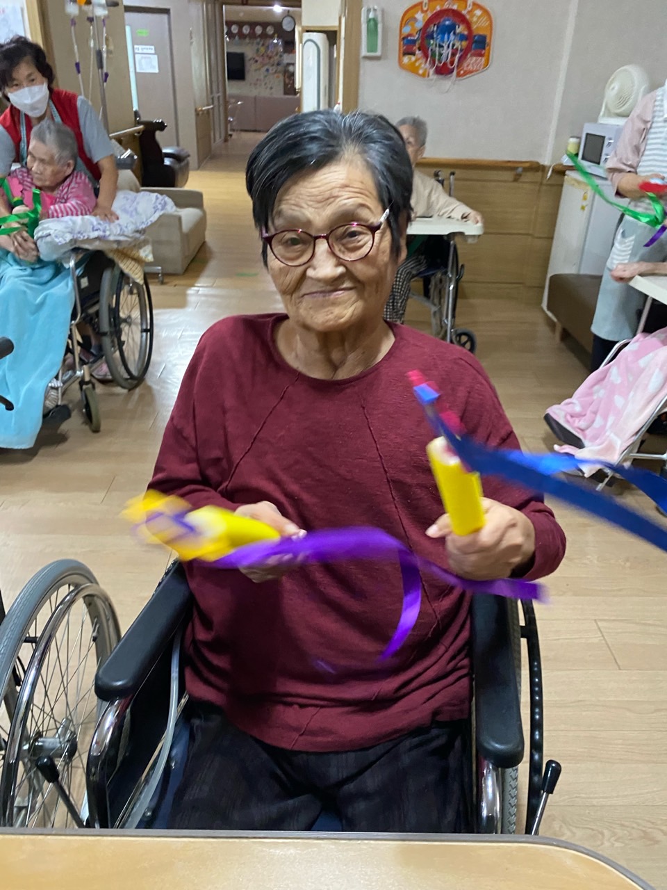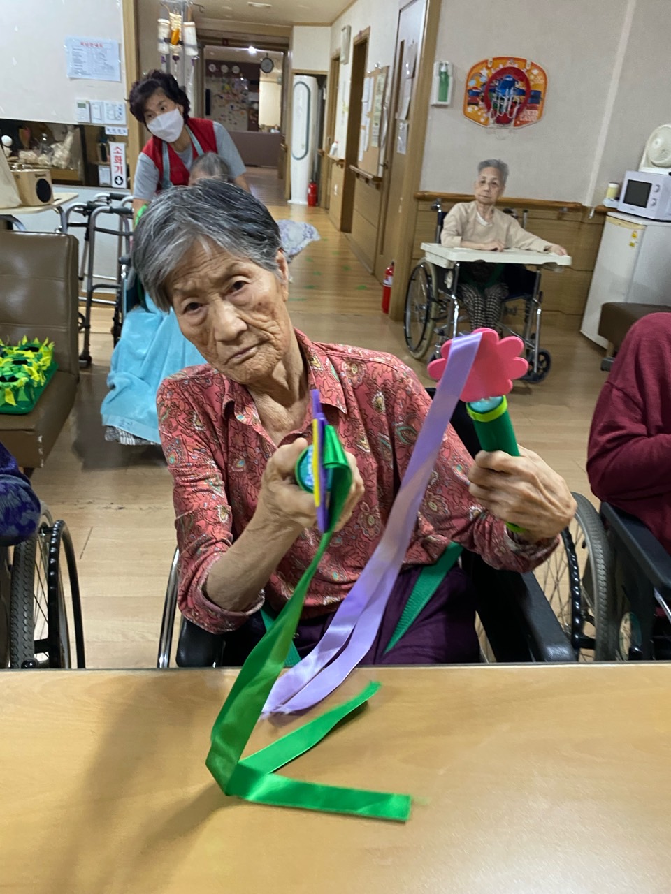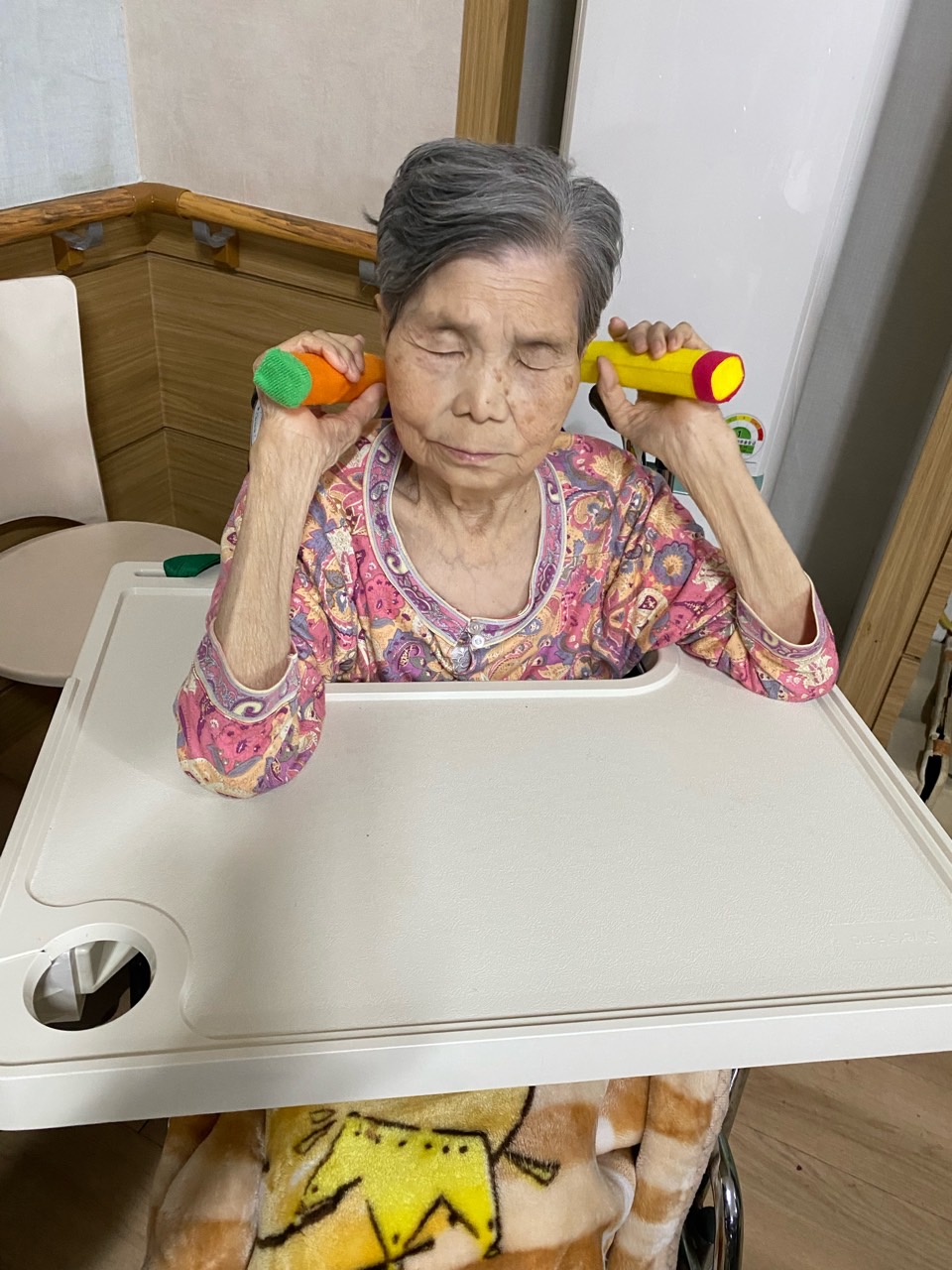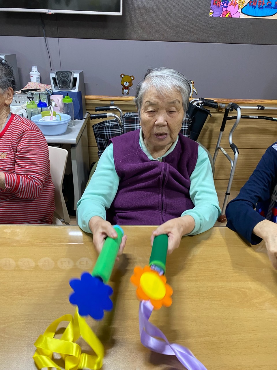 어르신들이 이제 탁구공 놀이를 제법 잘 하십니다.