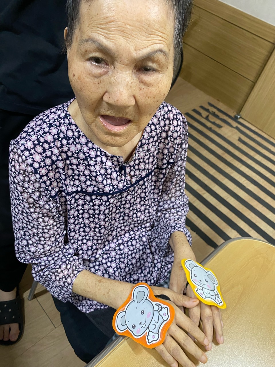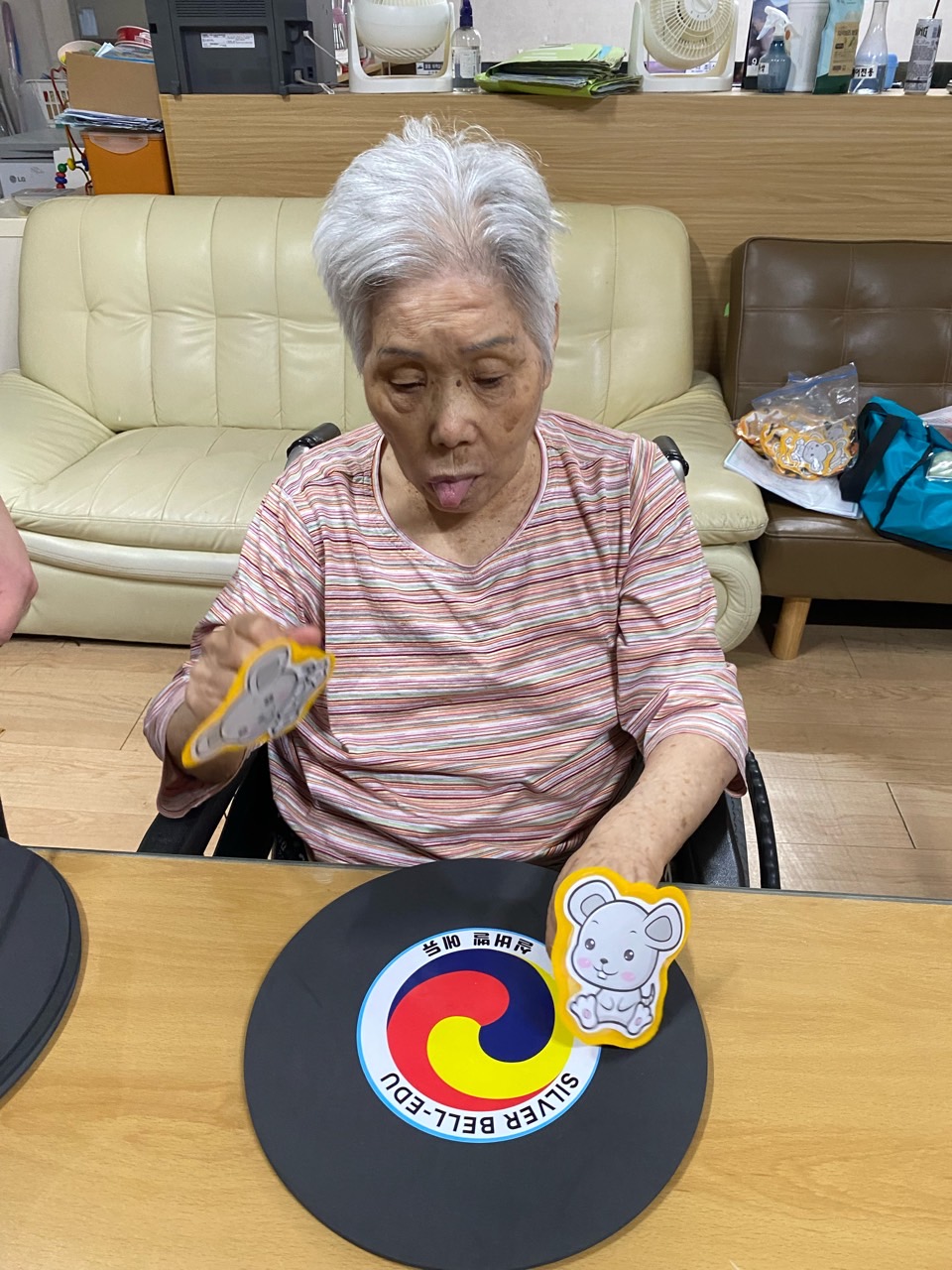어르신들이 고양이 세수와 야옹은 잘 따라 하시고 박자에 맞춰 손들기는 어려워 하셨지만