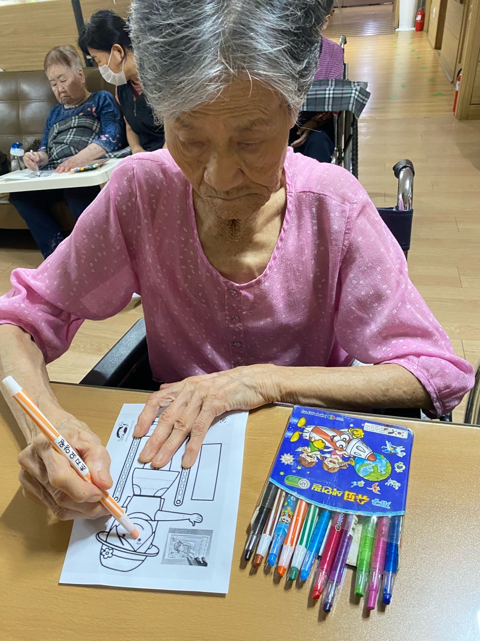 1. 어르신들을 프로그램실로 모신다.