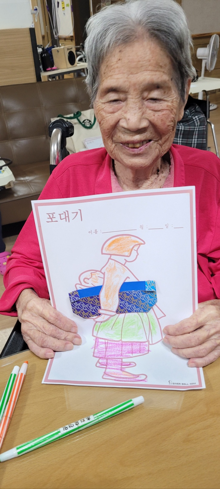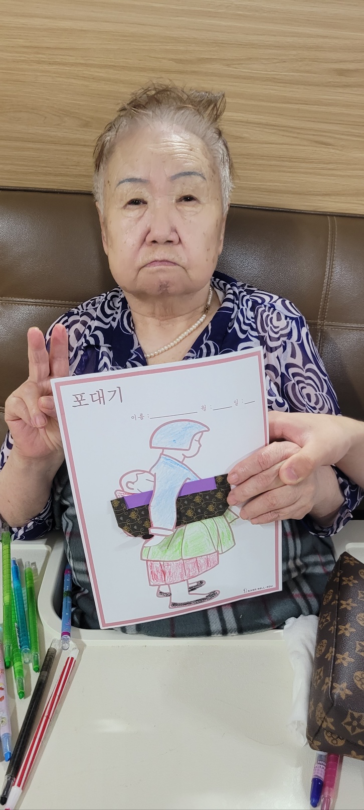 어르신들이 애기엄마라고 좋아하시며 색칠도 잘하시고 포대기도 예쁘게 꾸며보셨습니다 ㅎㅎ
