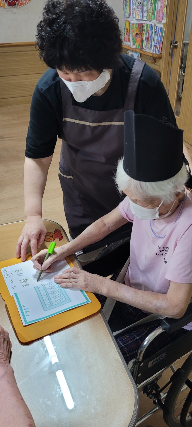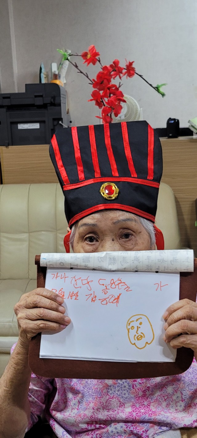 수수께끼는 어려워하셔서 받아쓰기 위주로 수업, 천자문 책에 꾸욱꾸욱 펜으로 글씨, 그림을 이쁘게 그리셨습니다 ^^