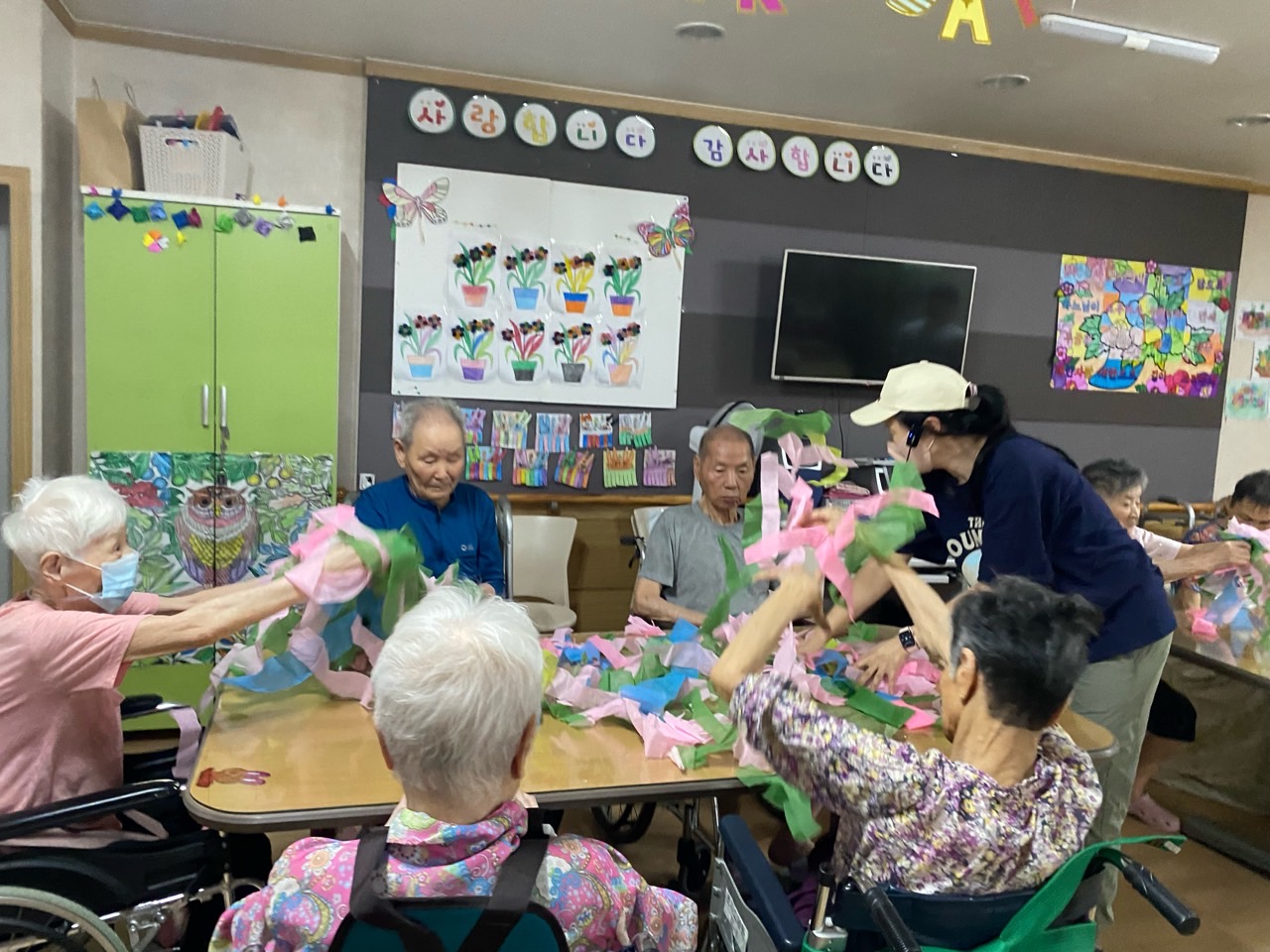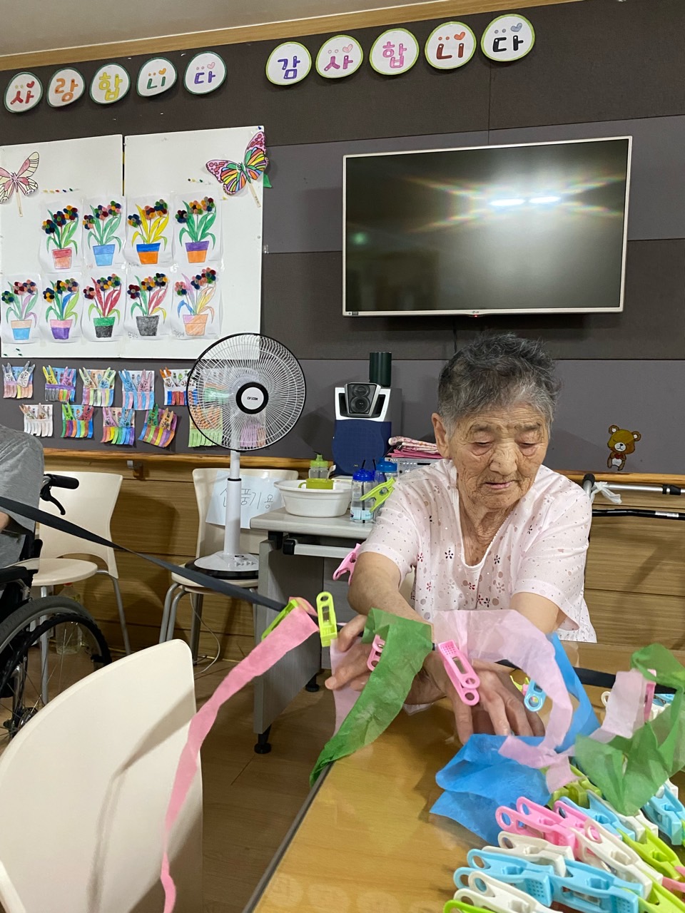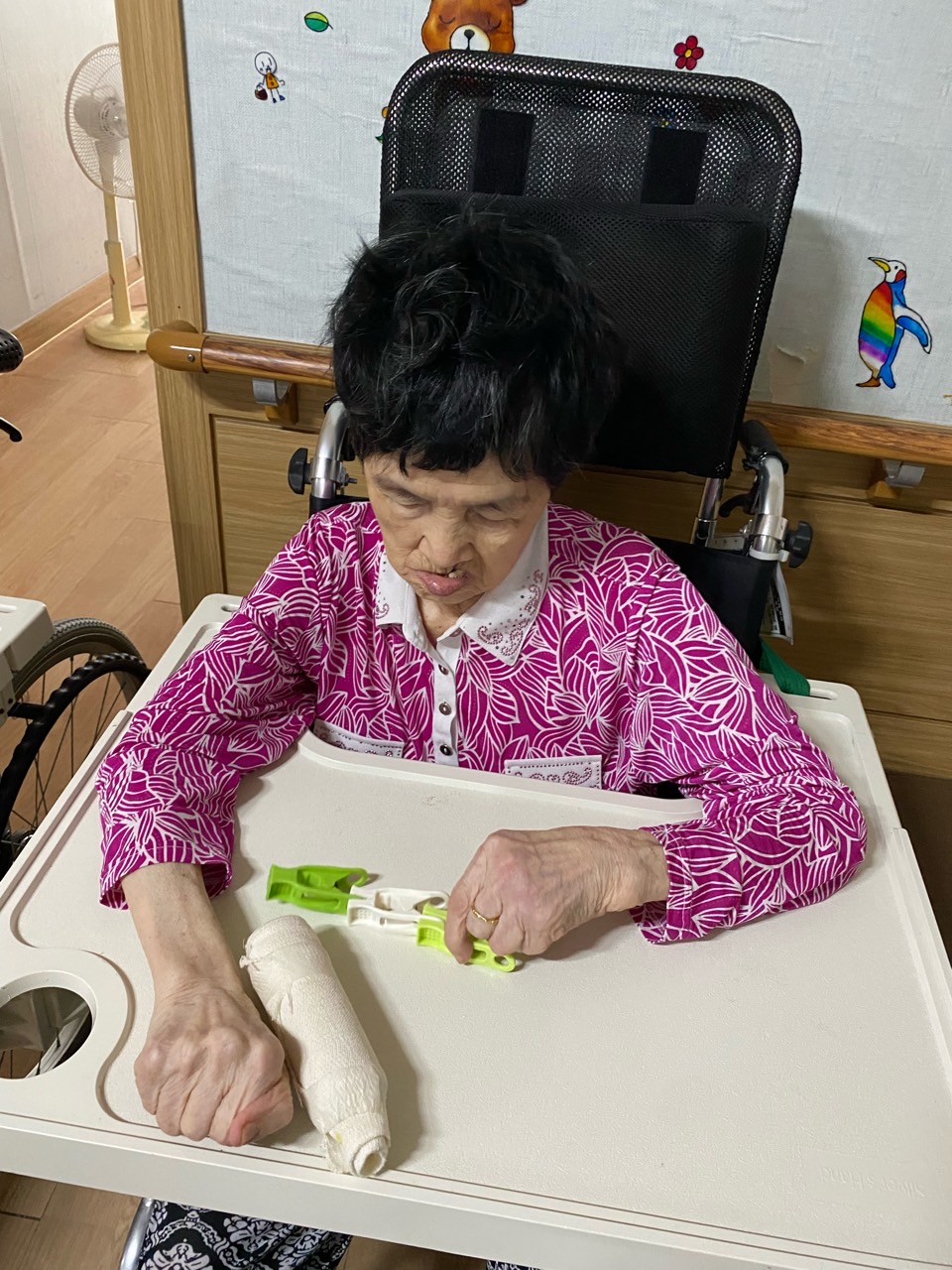어르신들께서 젓가락으로 우유팩을 옆으로 넘기시기를 잘 하시고 네모 블럭도 여러 방향으로 잘 쌓으시며 집중력을 키우시며 집중있는 모습으로 재밌게 하셨습니다.