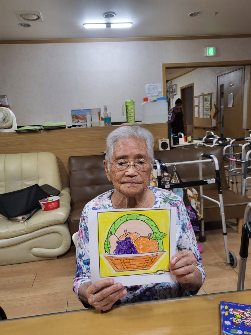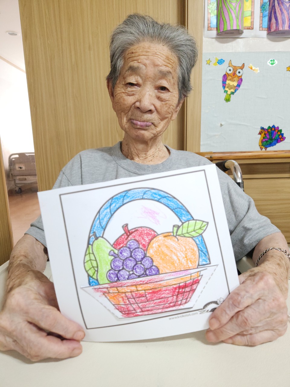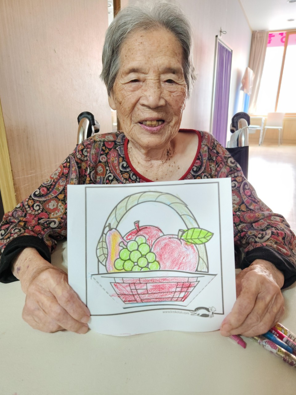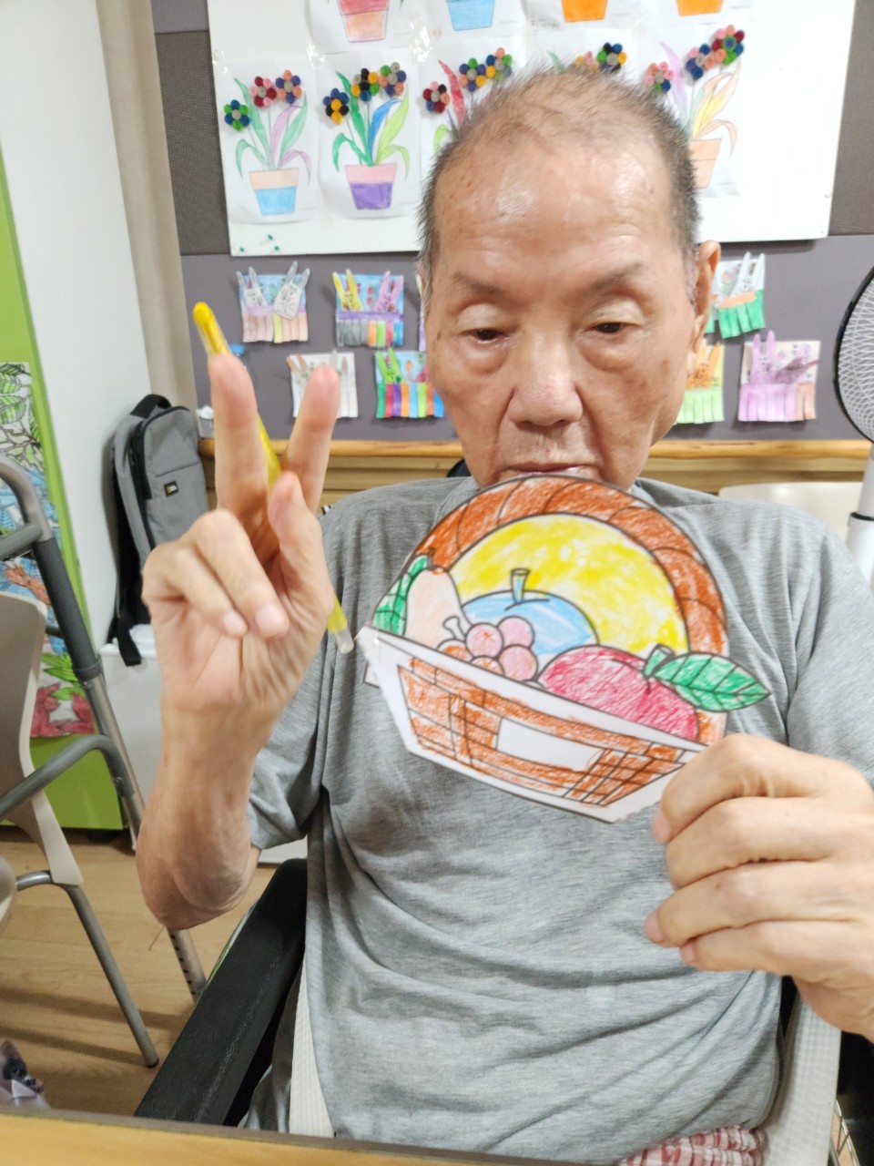 어르신들께서 과일바구니가 이쁘다고 하시며 형형색색 예쁘게 색칠하셨습니다.