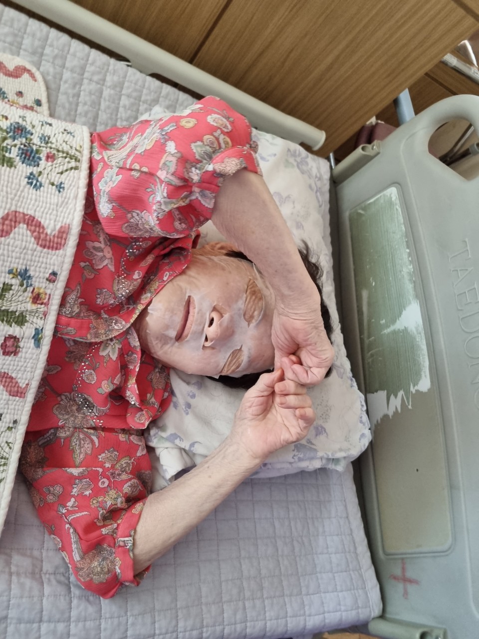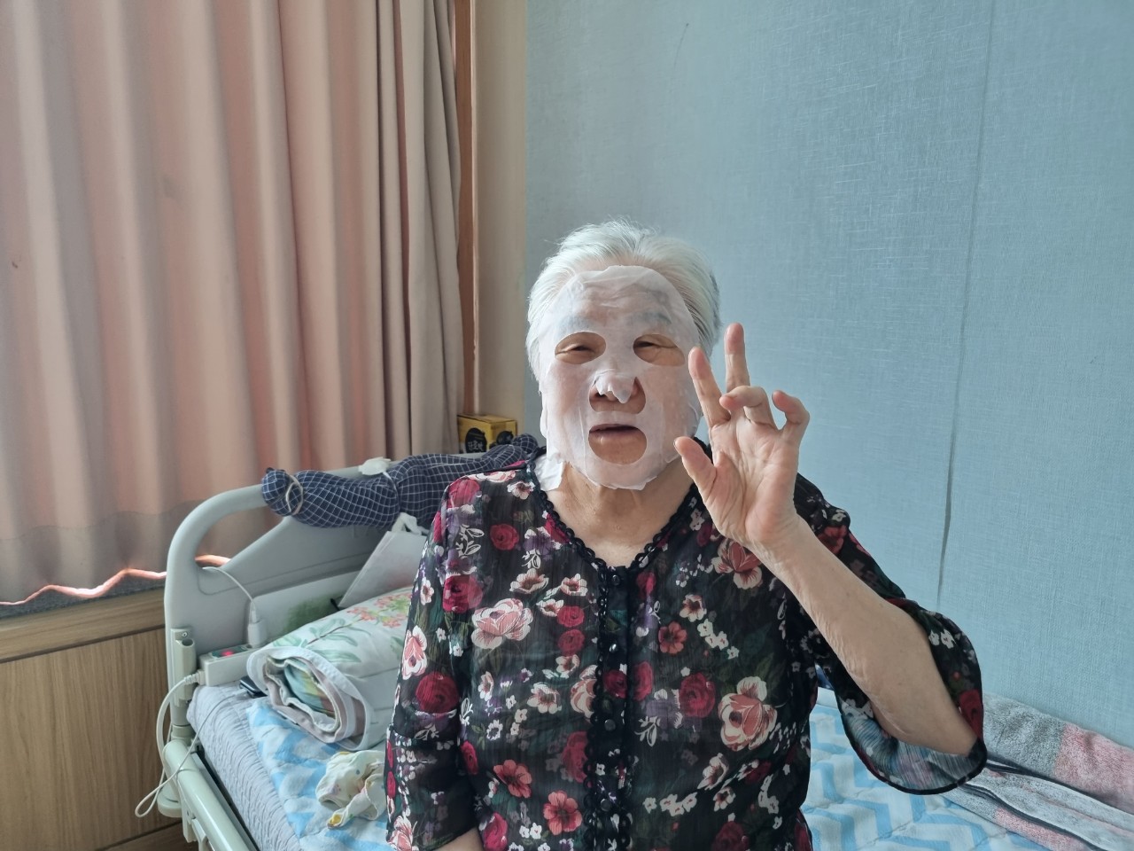 마스크팩을 붙힌 본인의 사진을 보면서 매우 즐거워하셨습니다.