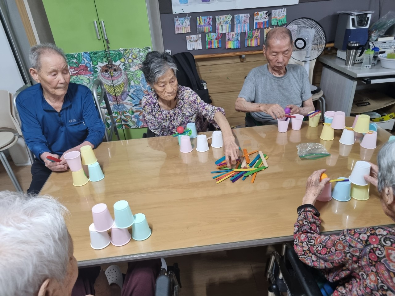 종이컵과 아이스크림막대를 이용하여 탁구공을 세우며 어르신들의 균형감각을 키우는 프로그램입니다. ^^