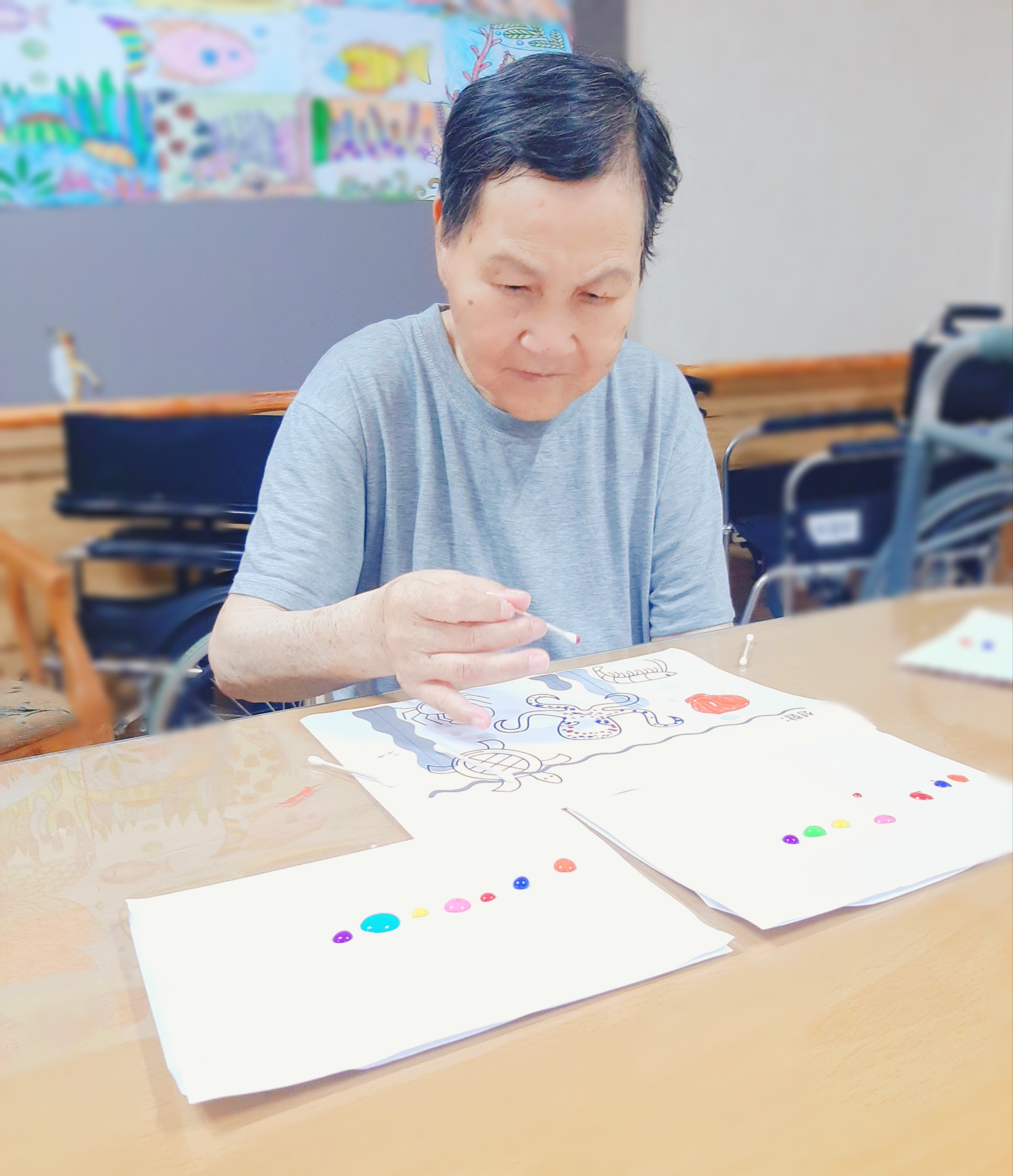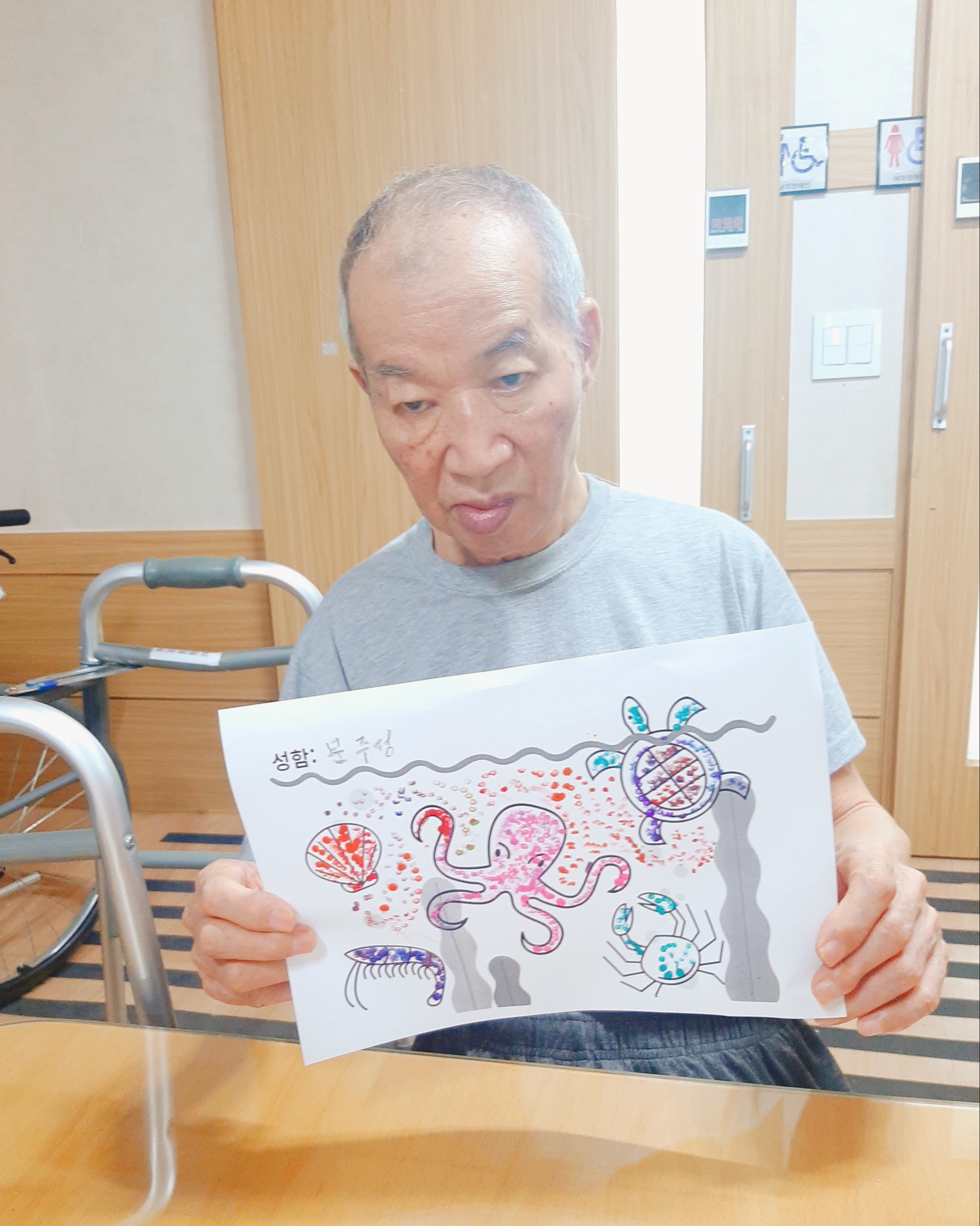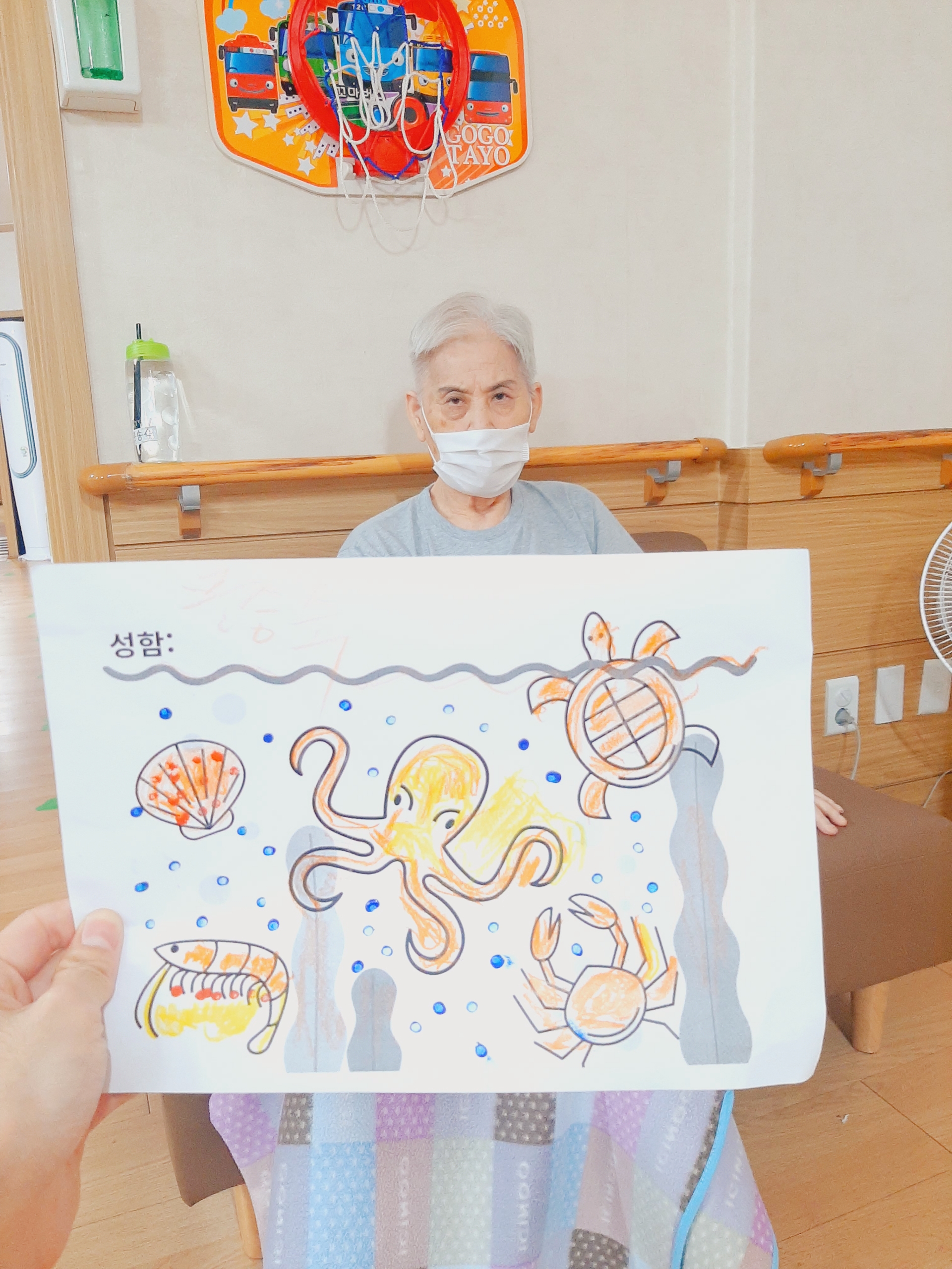 무더운 오늘 시원한 바닷속 세상을 물감과 면봉을 이용해 찍으며