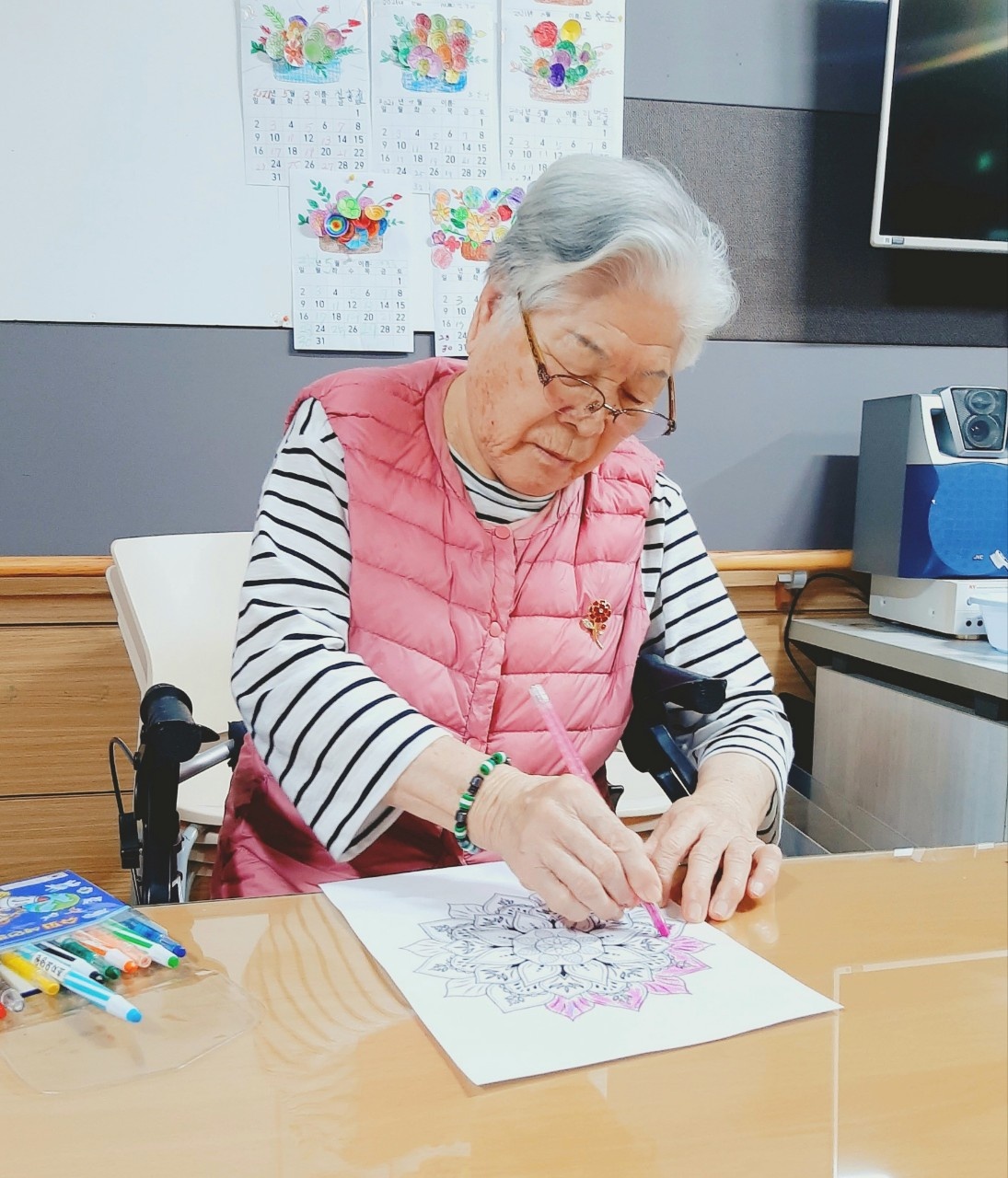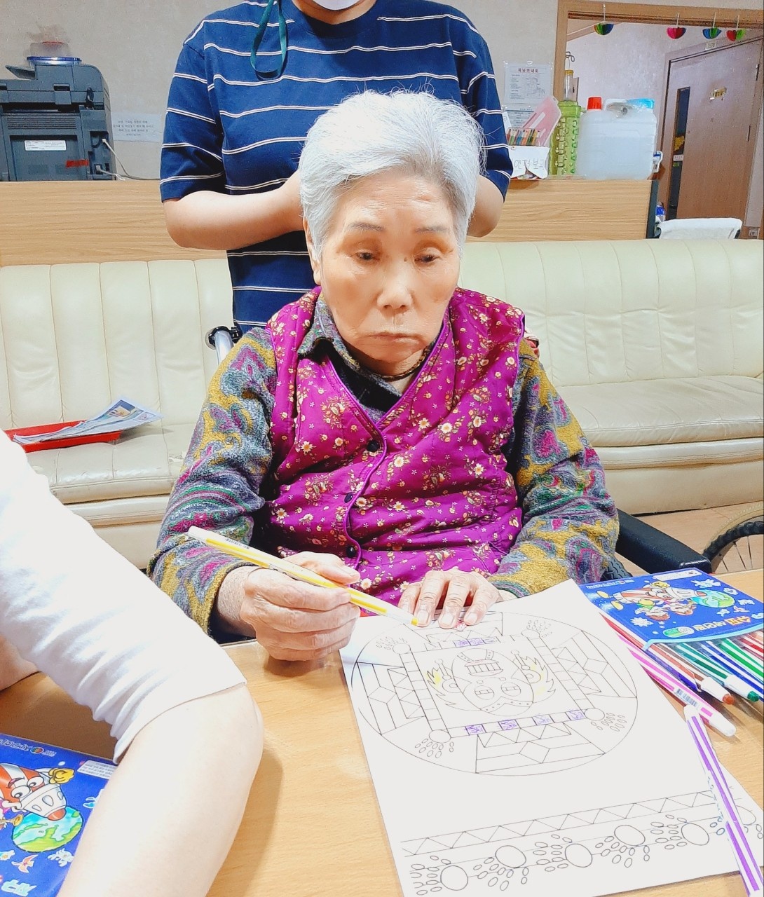 힘들다 이걸 어떡해 하냐 하시더니, 이렇게 아름답게 색칠을 하시곤 활짝 웃어 주십니다.