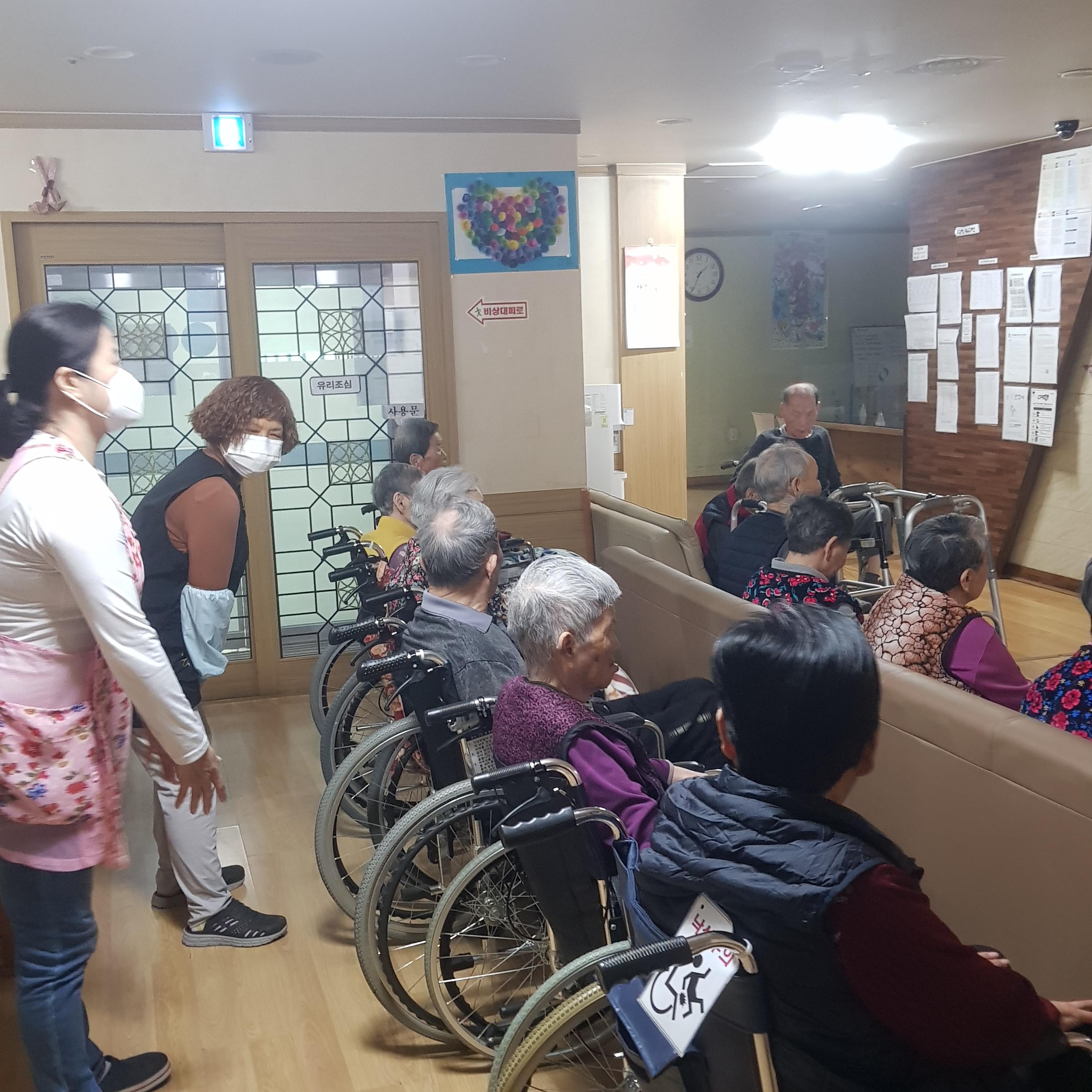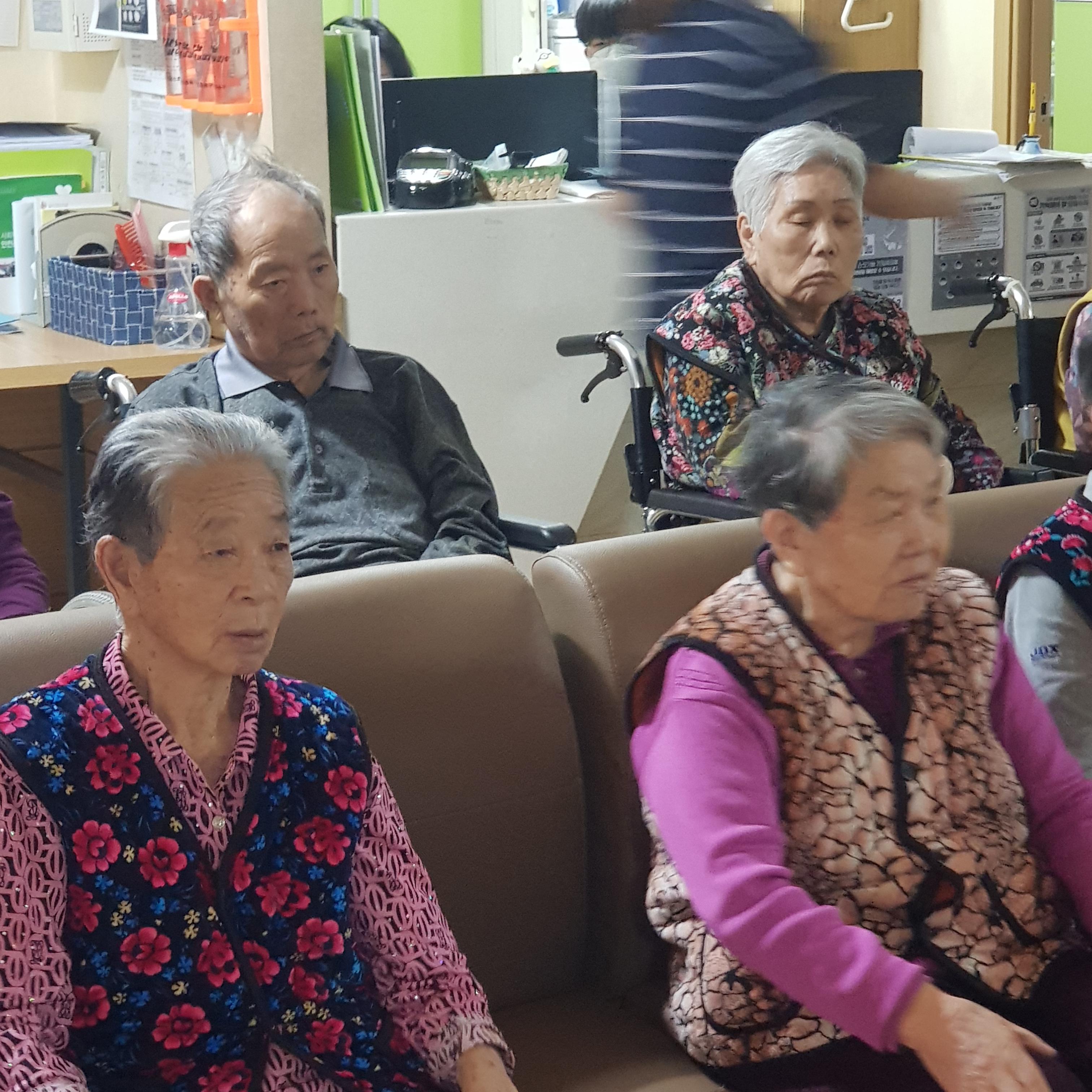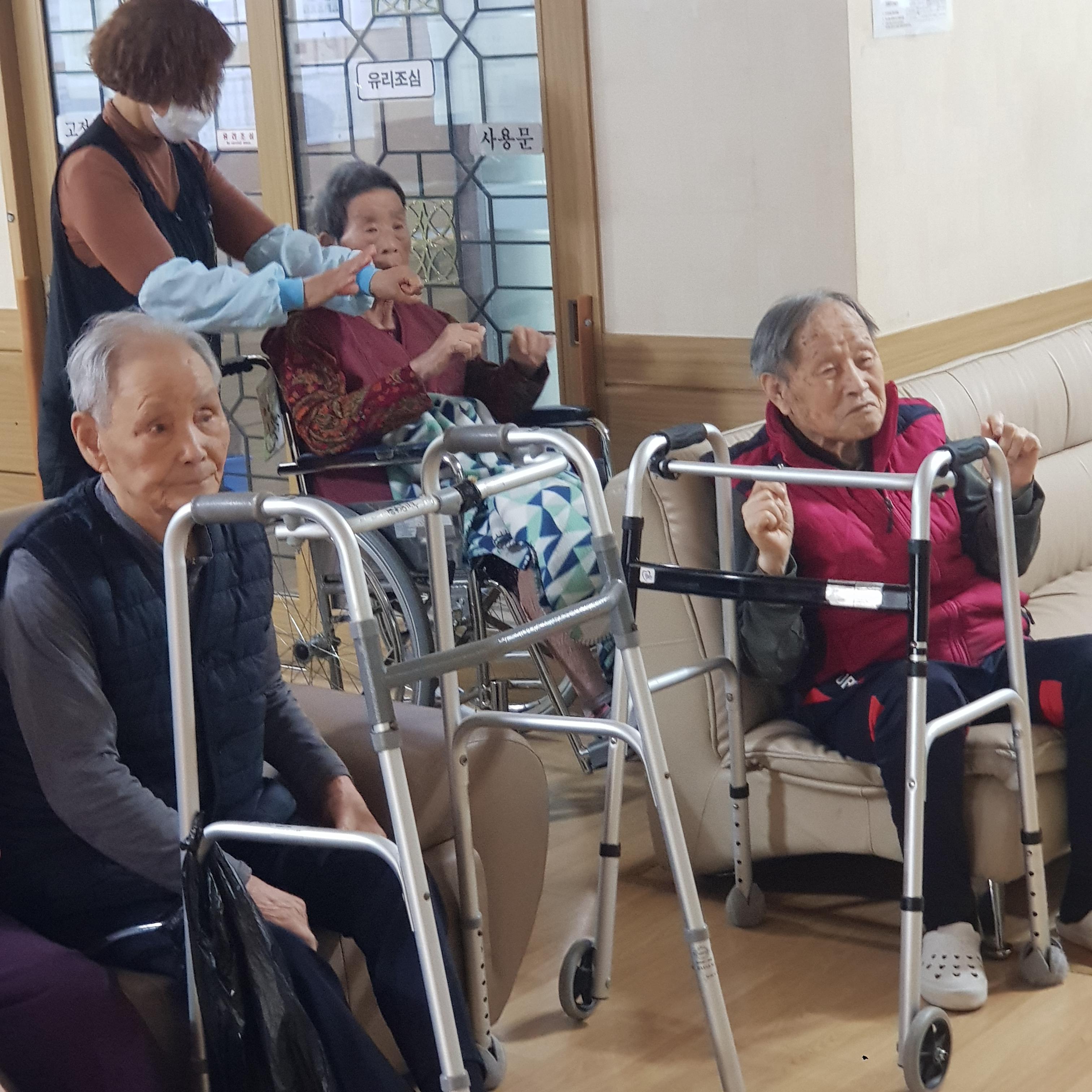손주같은 사회복무요원들과 국민체조를 하시며 즐거워 하셨습니다.