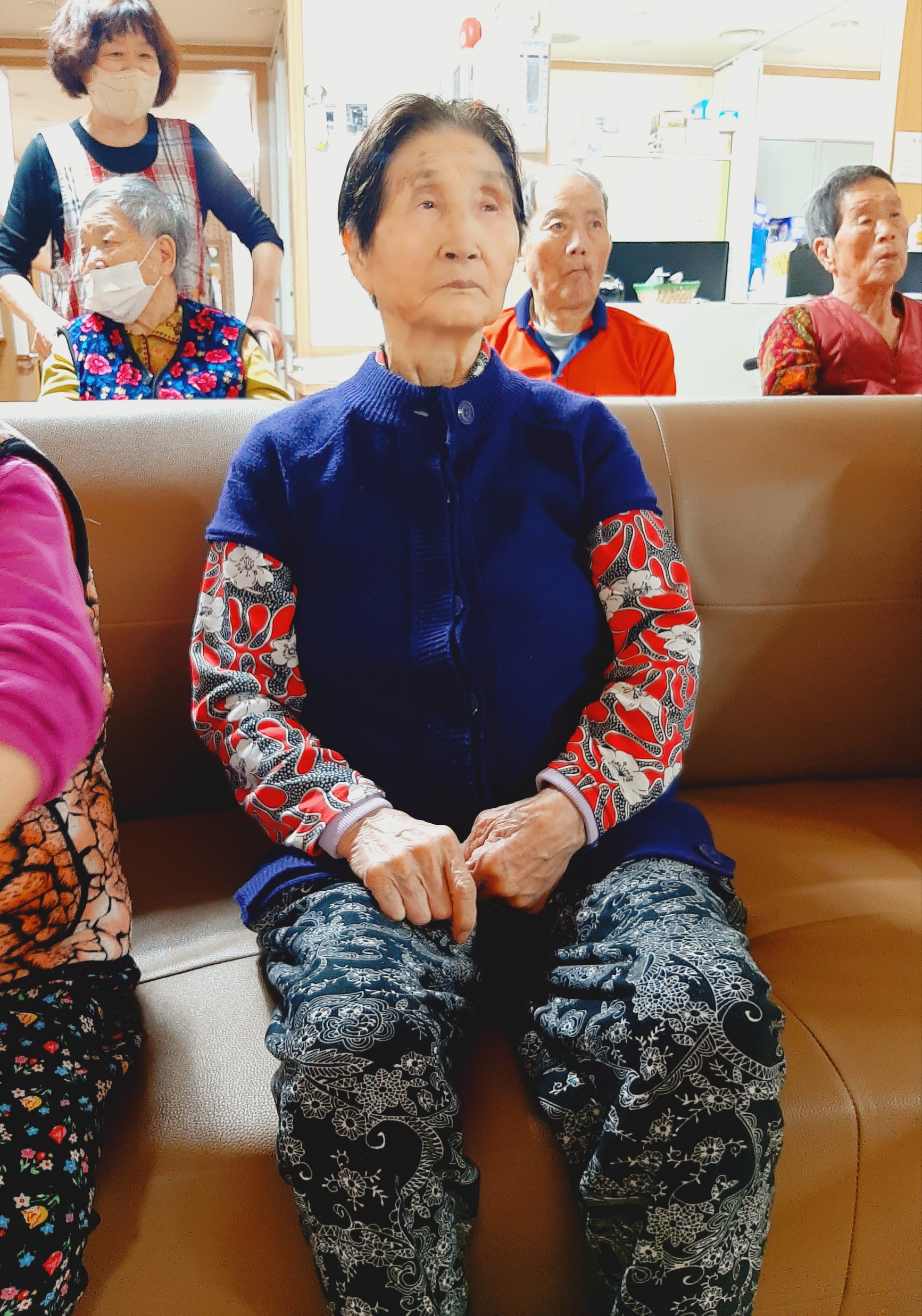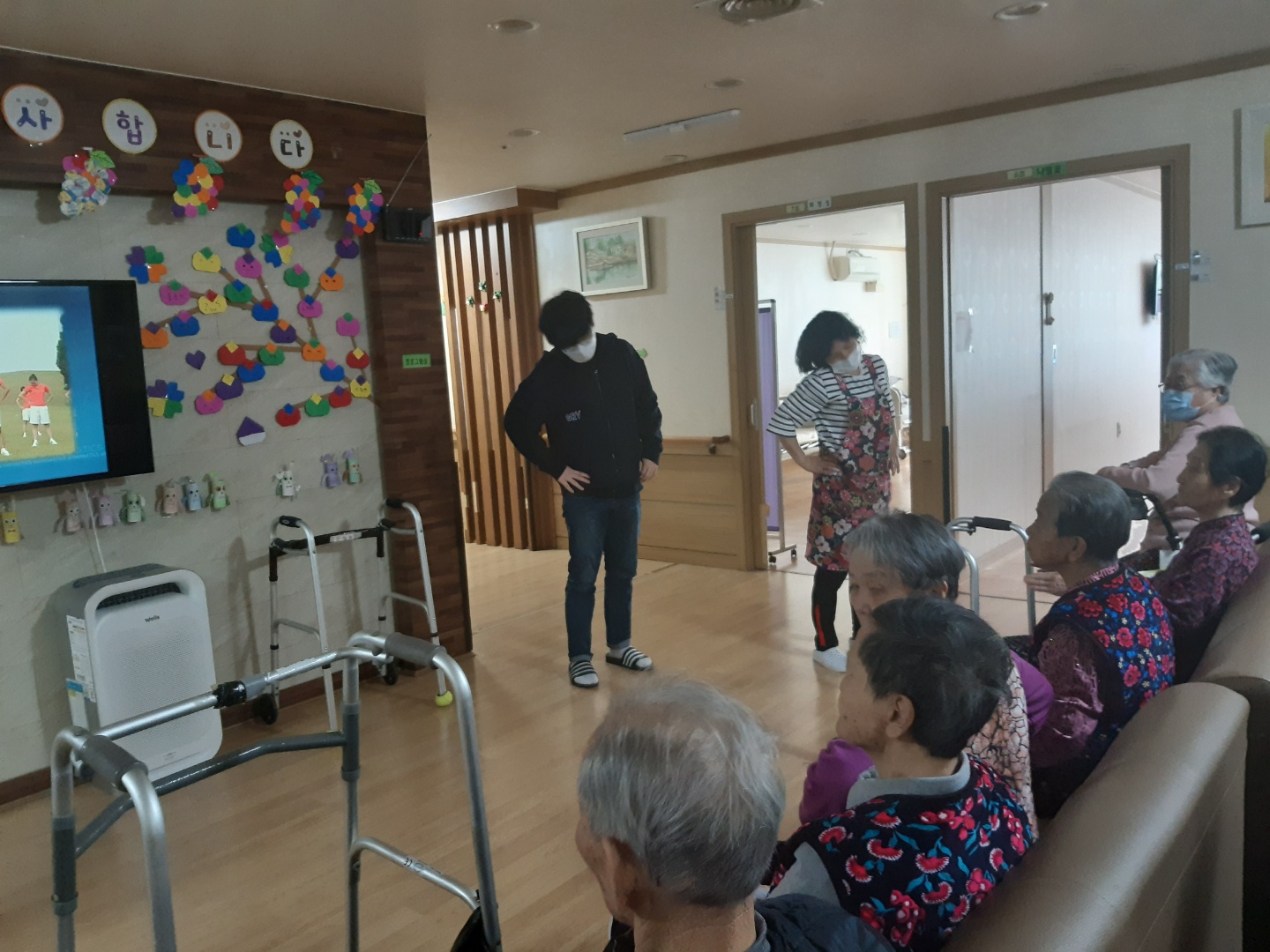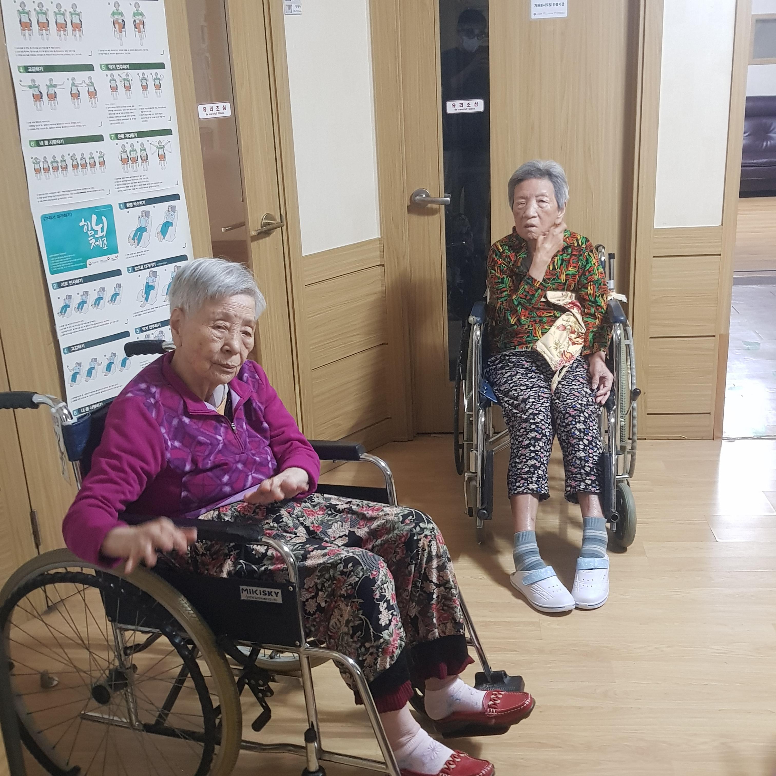 손주같은 사회복무요원들과 국민체조를 하시며 즐거워 하셨습니다.