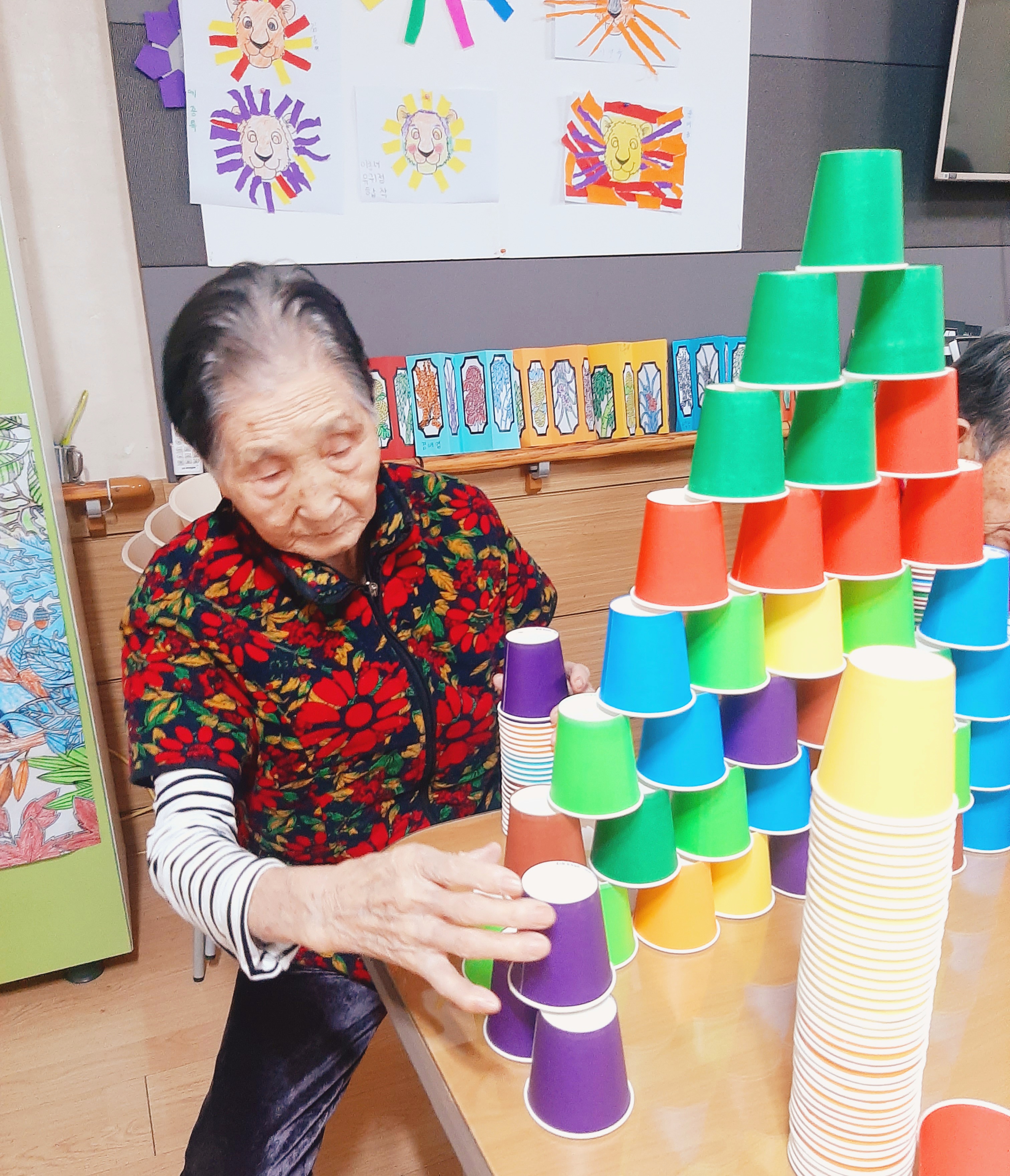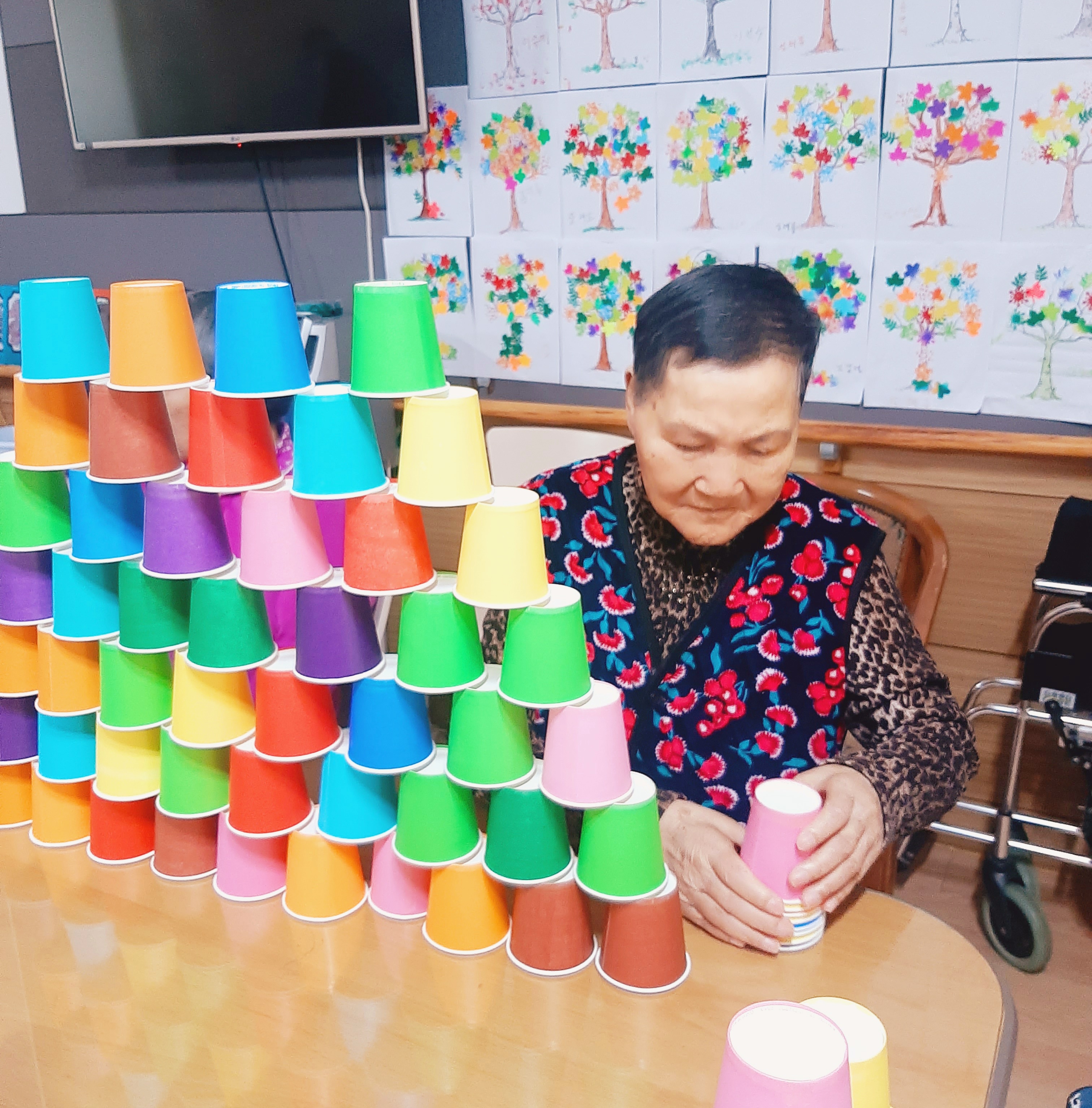 스트레스를 확 날릴 수 있는 컵쌓기 놀이를 하는 날입니다.