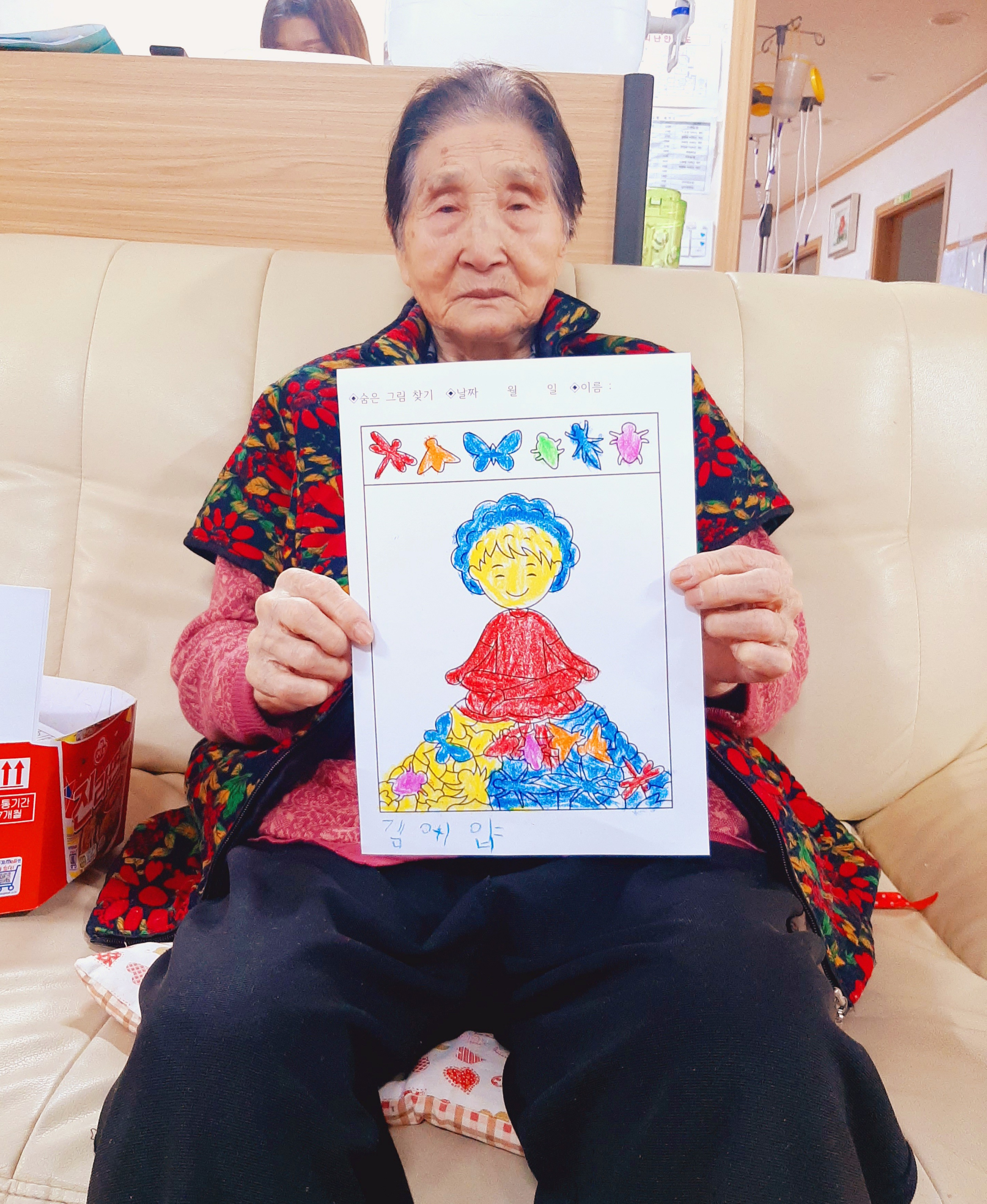 그림 속에 숨어 있는 모양들을 찾아보고 색칠을 해보았습니다.