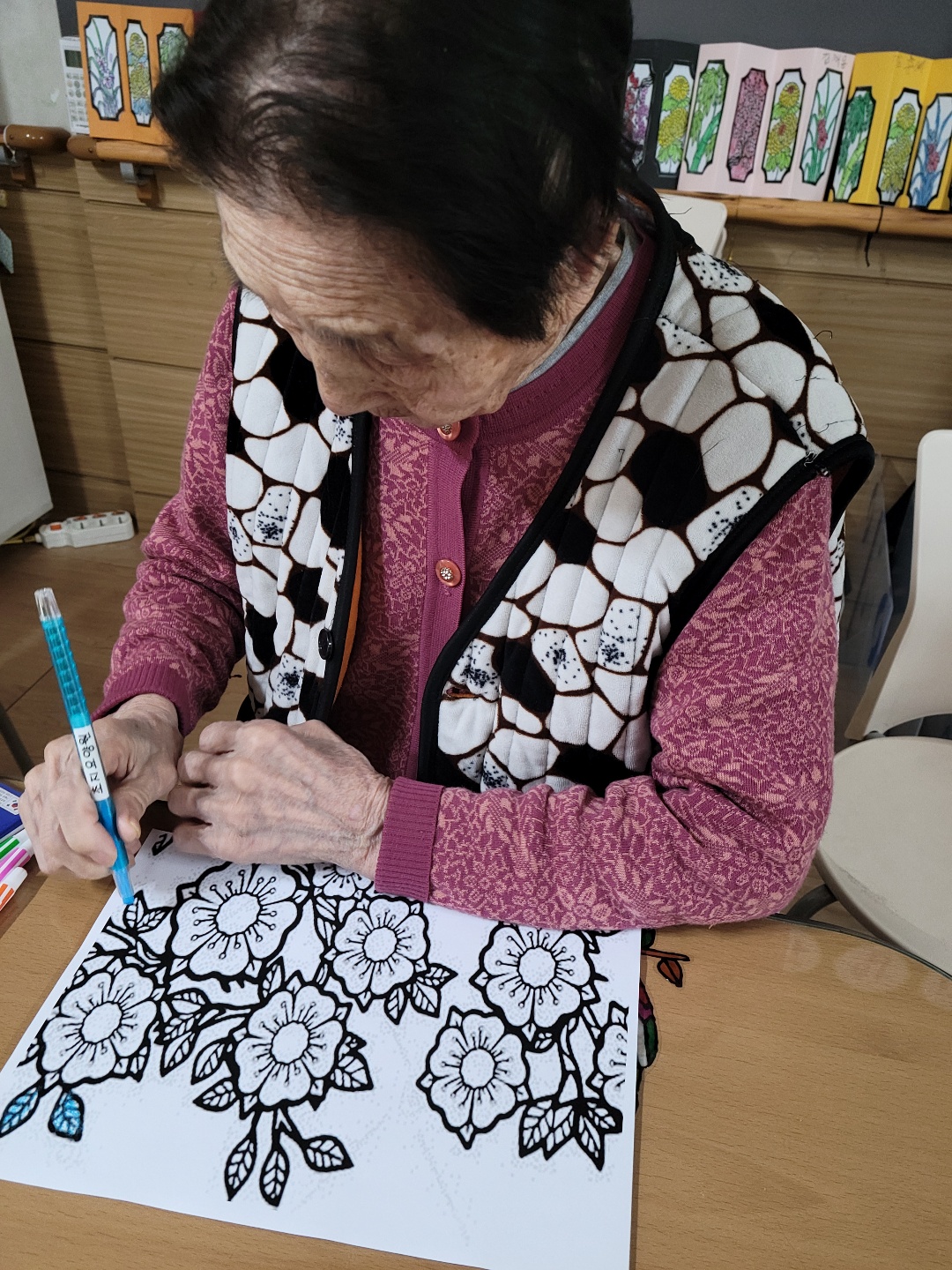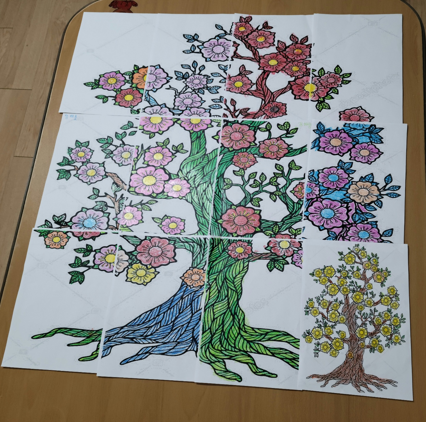 손에 힘을 주어 매화 꽃과 나무를 완성해 주신 어르신들 덕분에 튼튼하고 예쁜 매화나무가 완성되었습니다.
