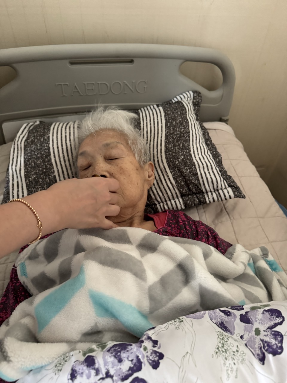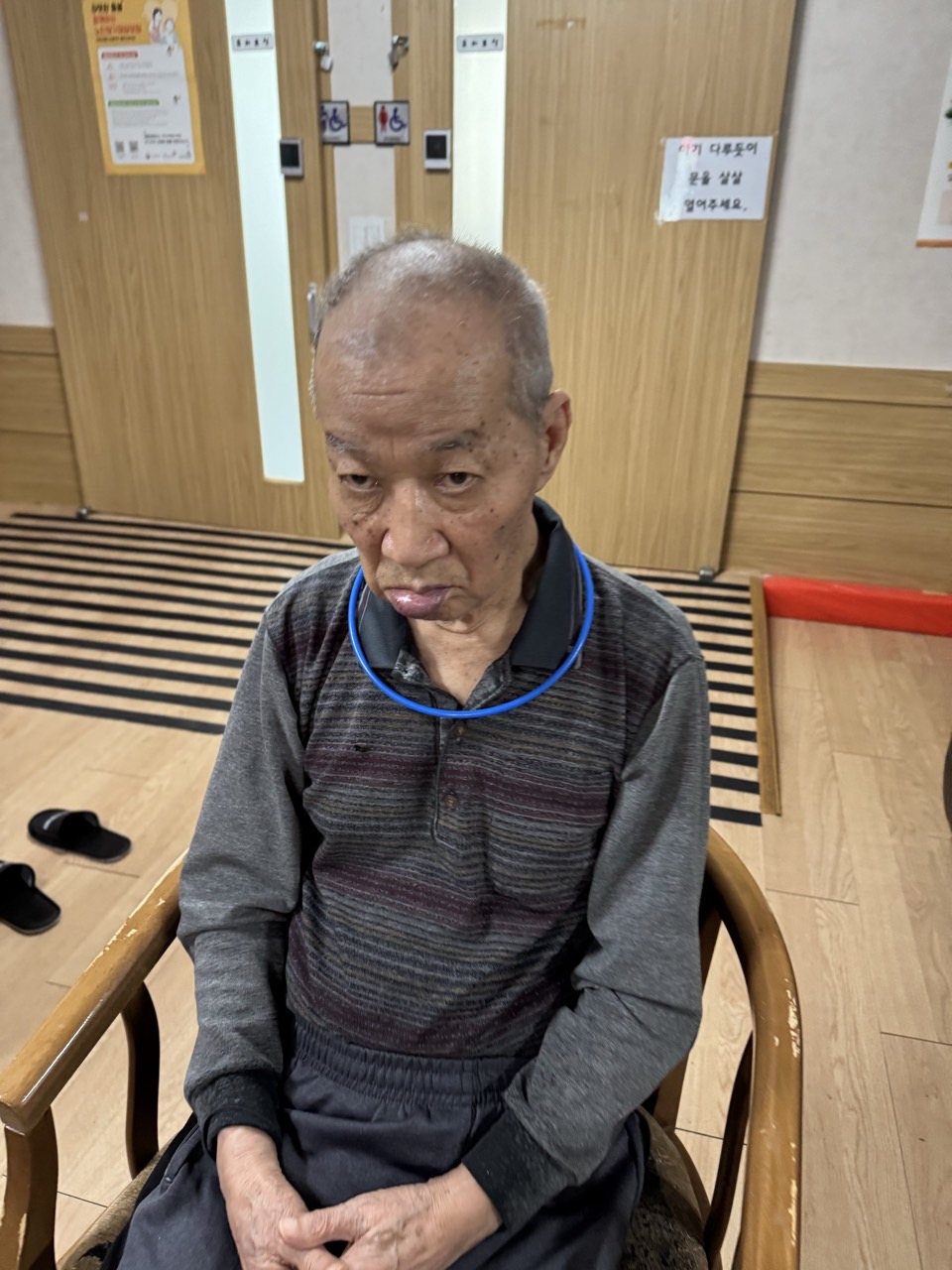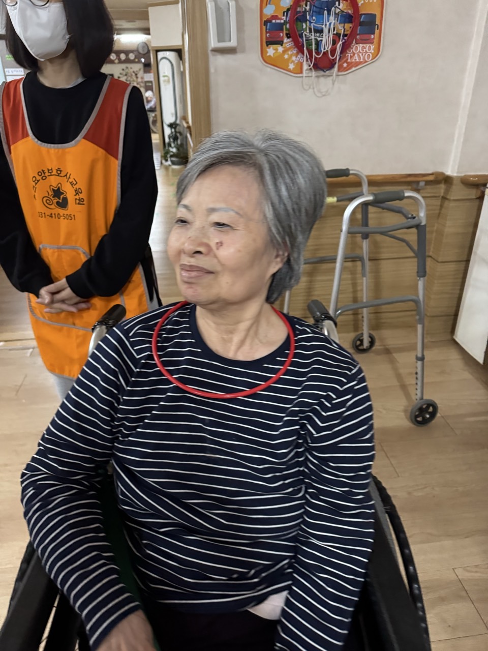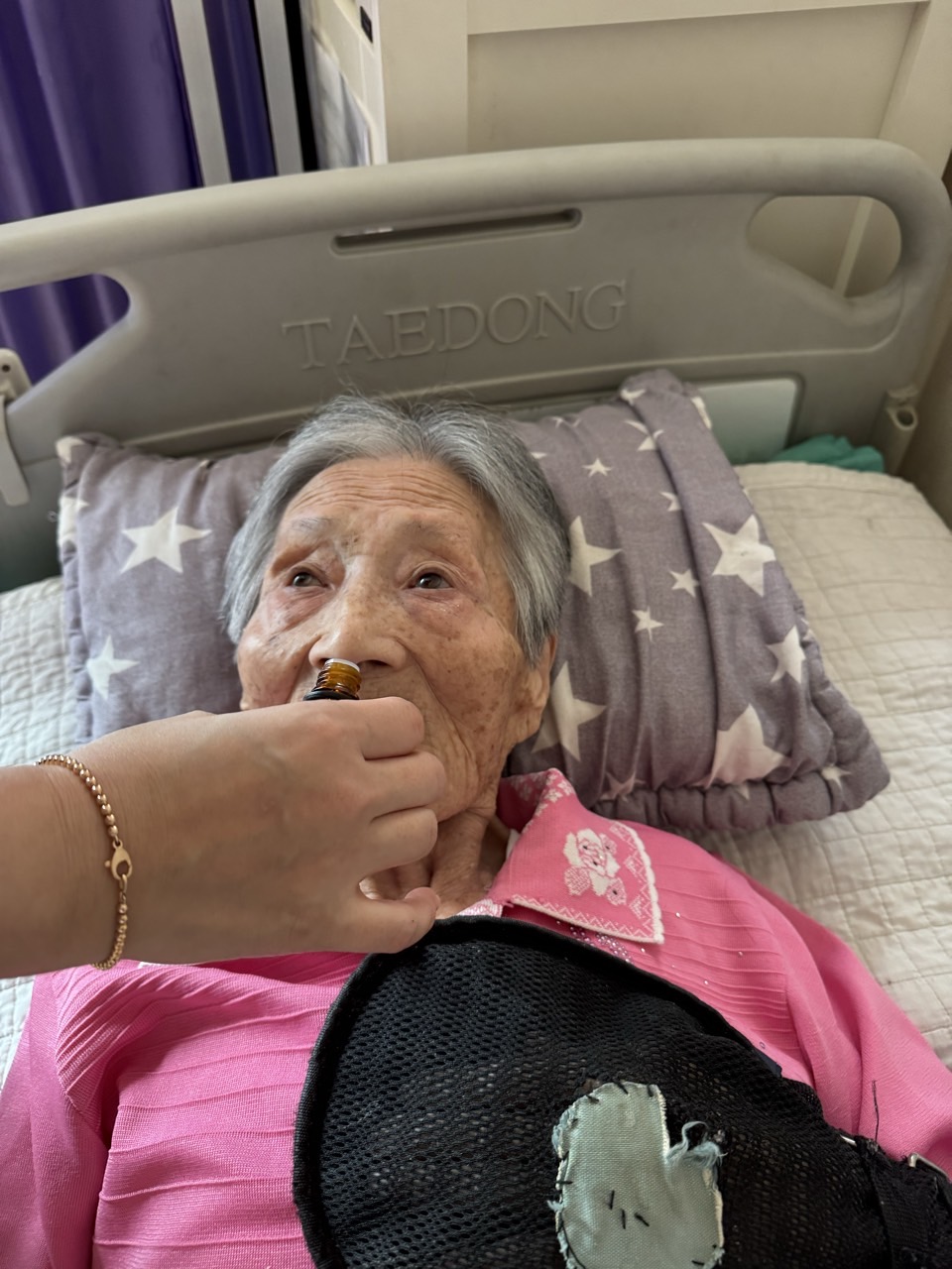 ② 진행 : 코에 오일 냄새를 맡게 하고, 관자놀이에 롤링기법으로 마사지를 해준다.