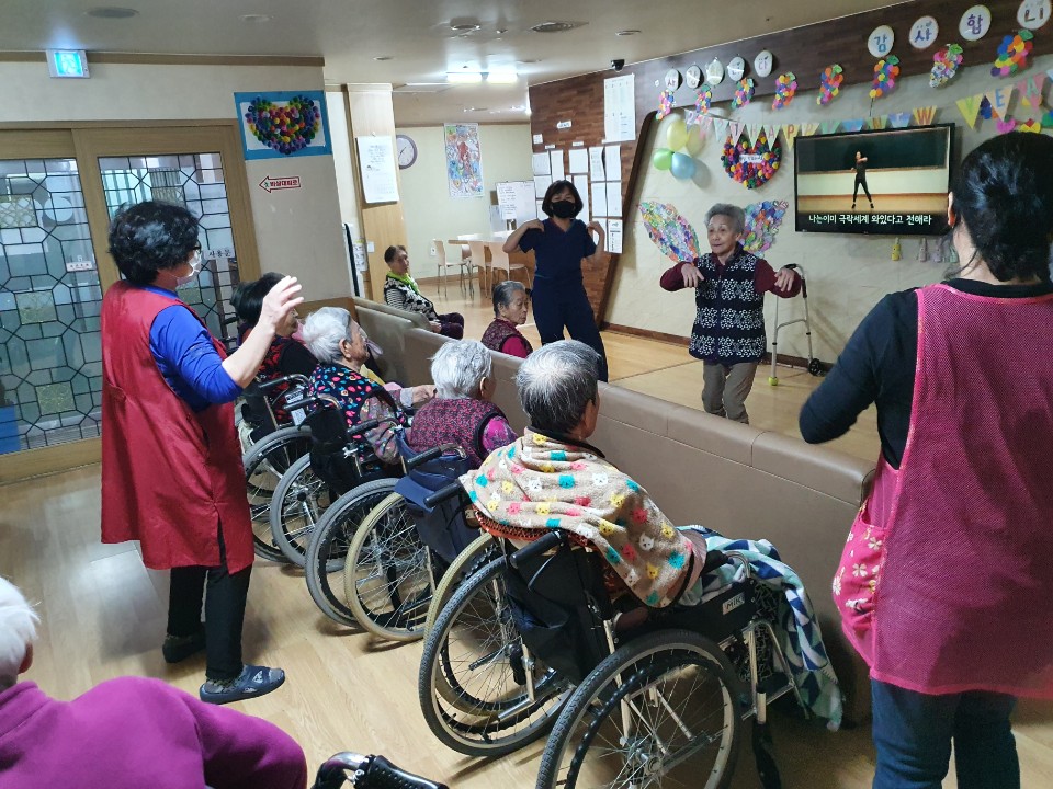 영화를 보고 즐겁게 웃으시는 어르신들입니다.