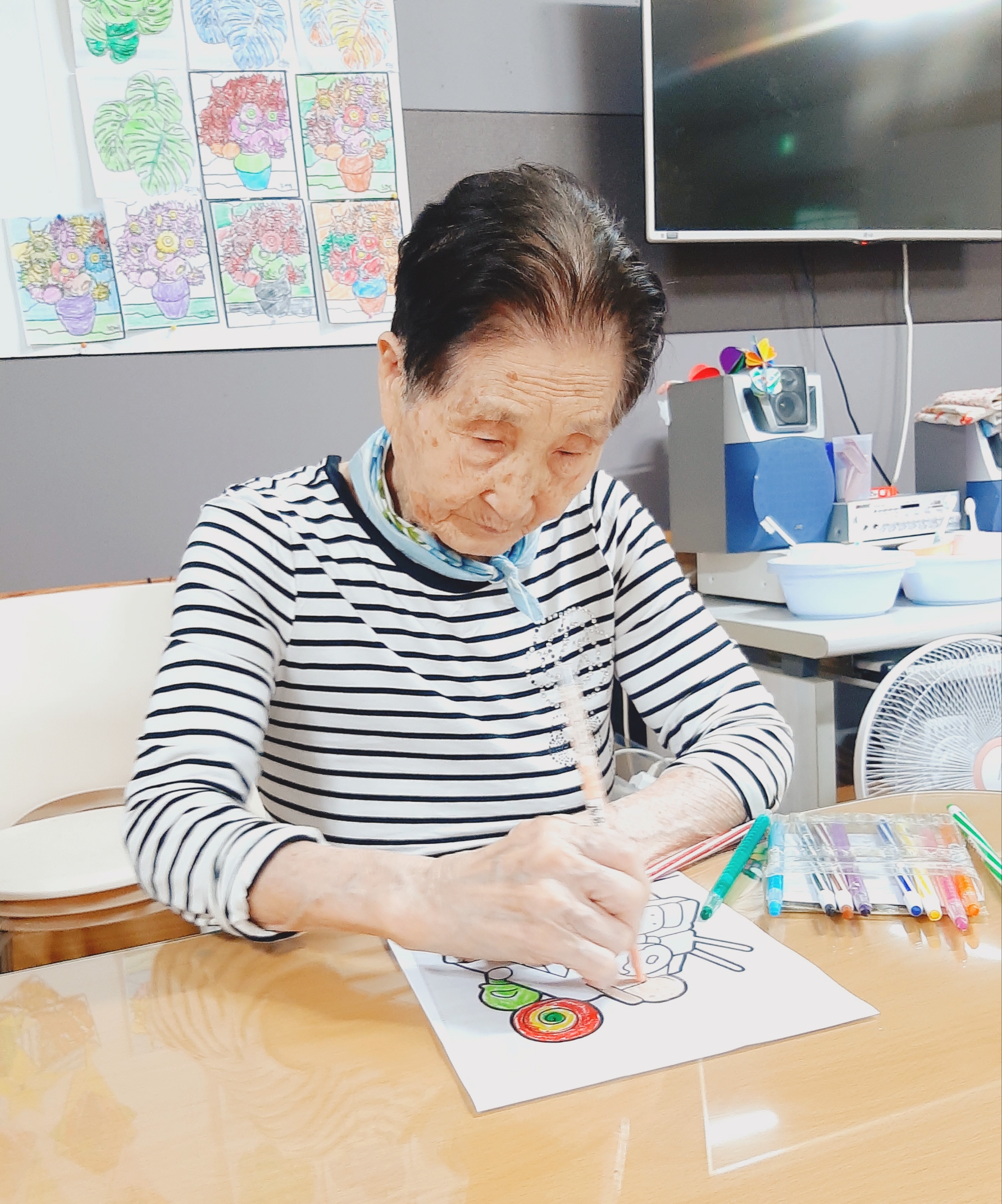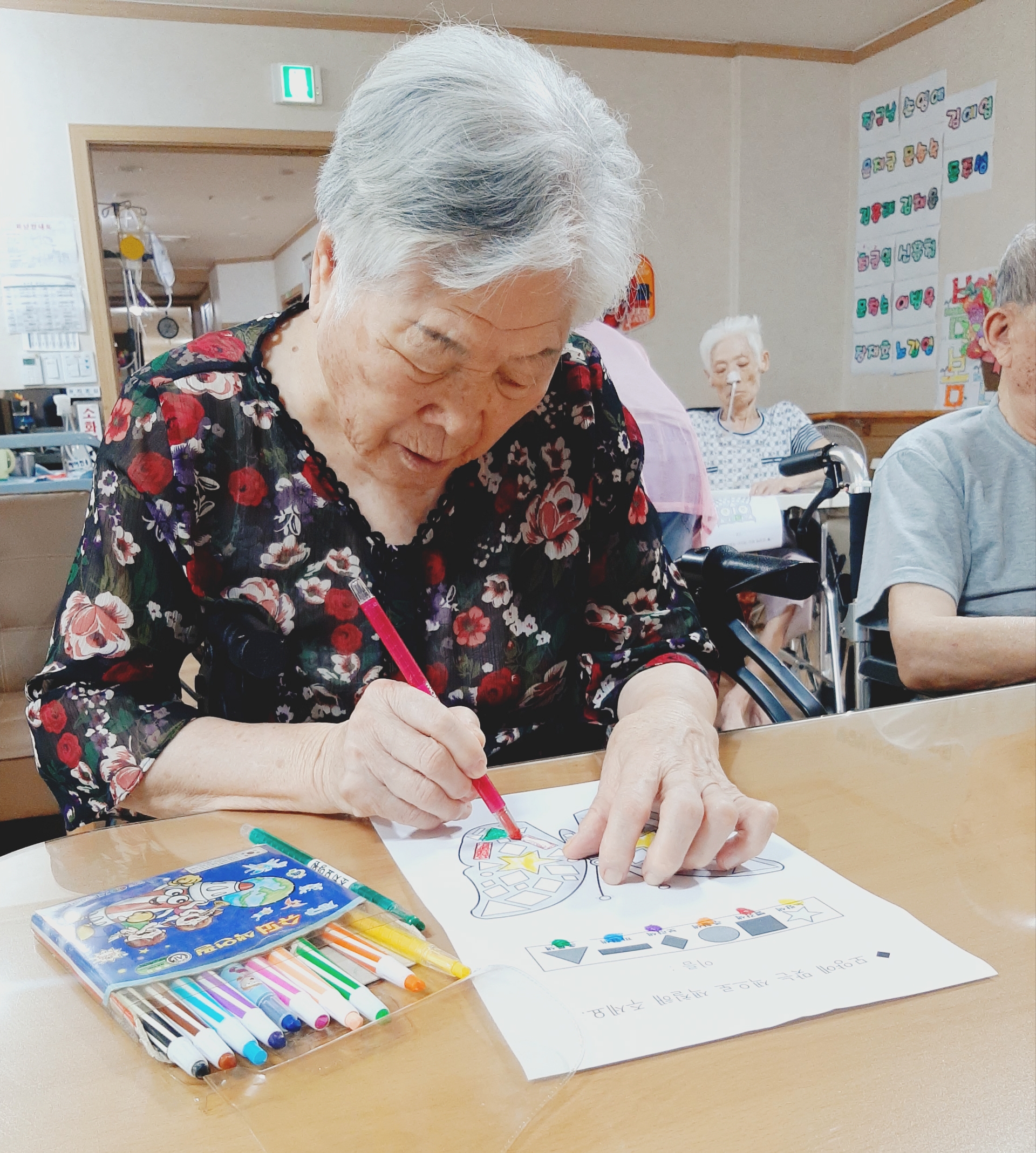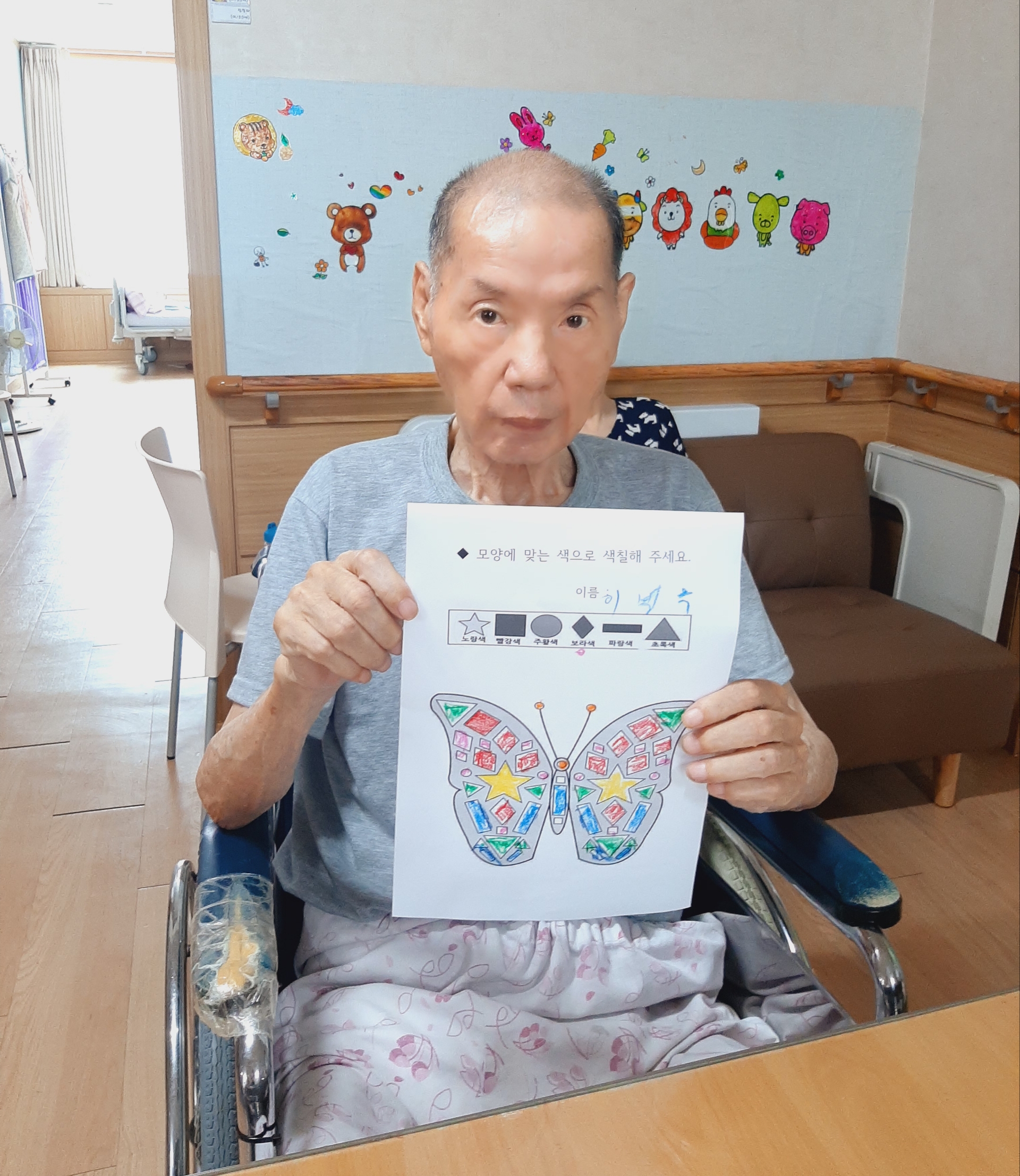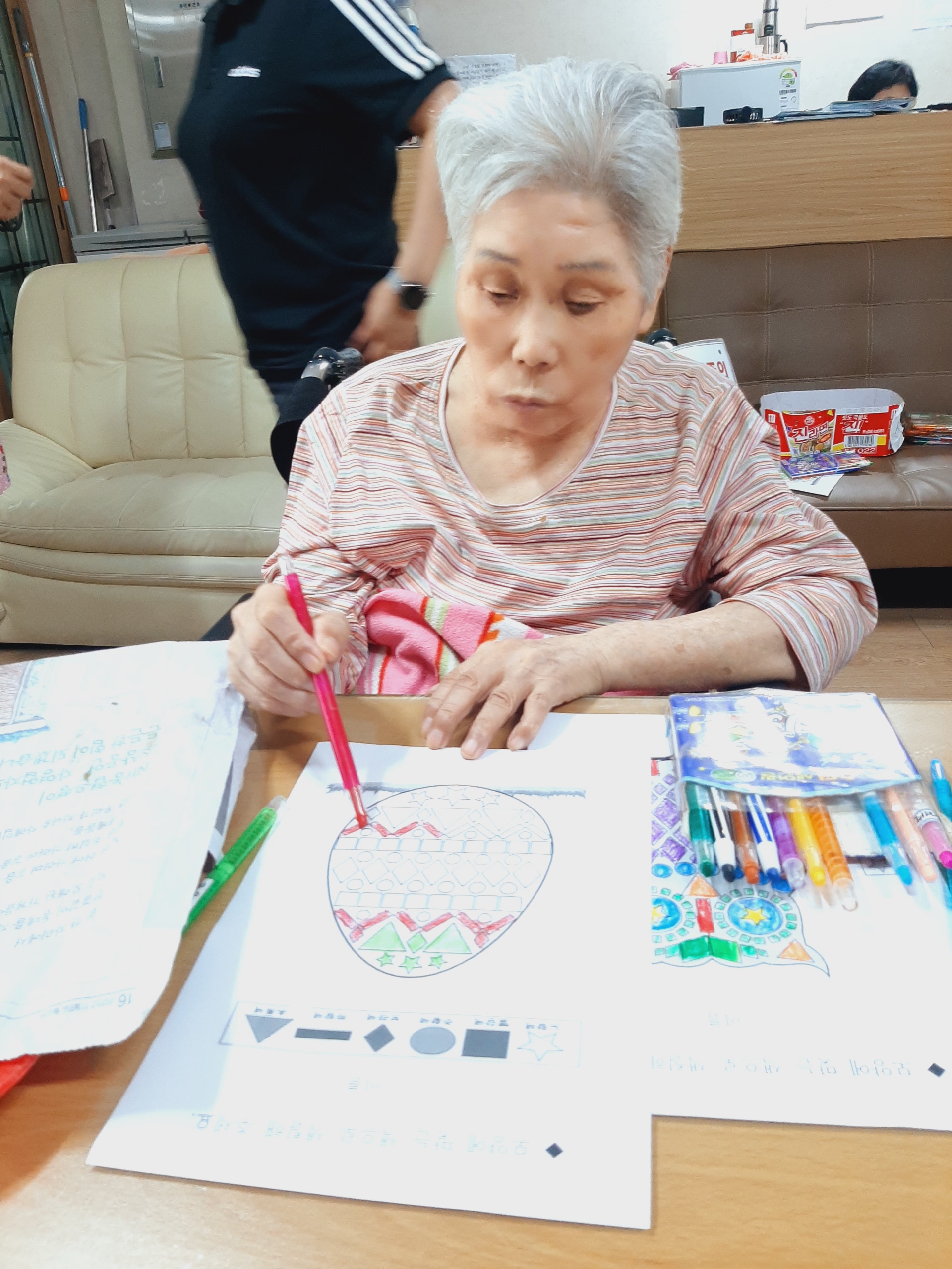 오늘 오후에는 어르신들이 좋아하시는 모양찍기를 진행하였습니다