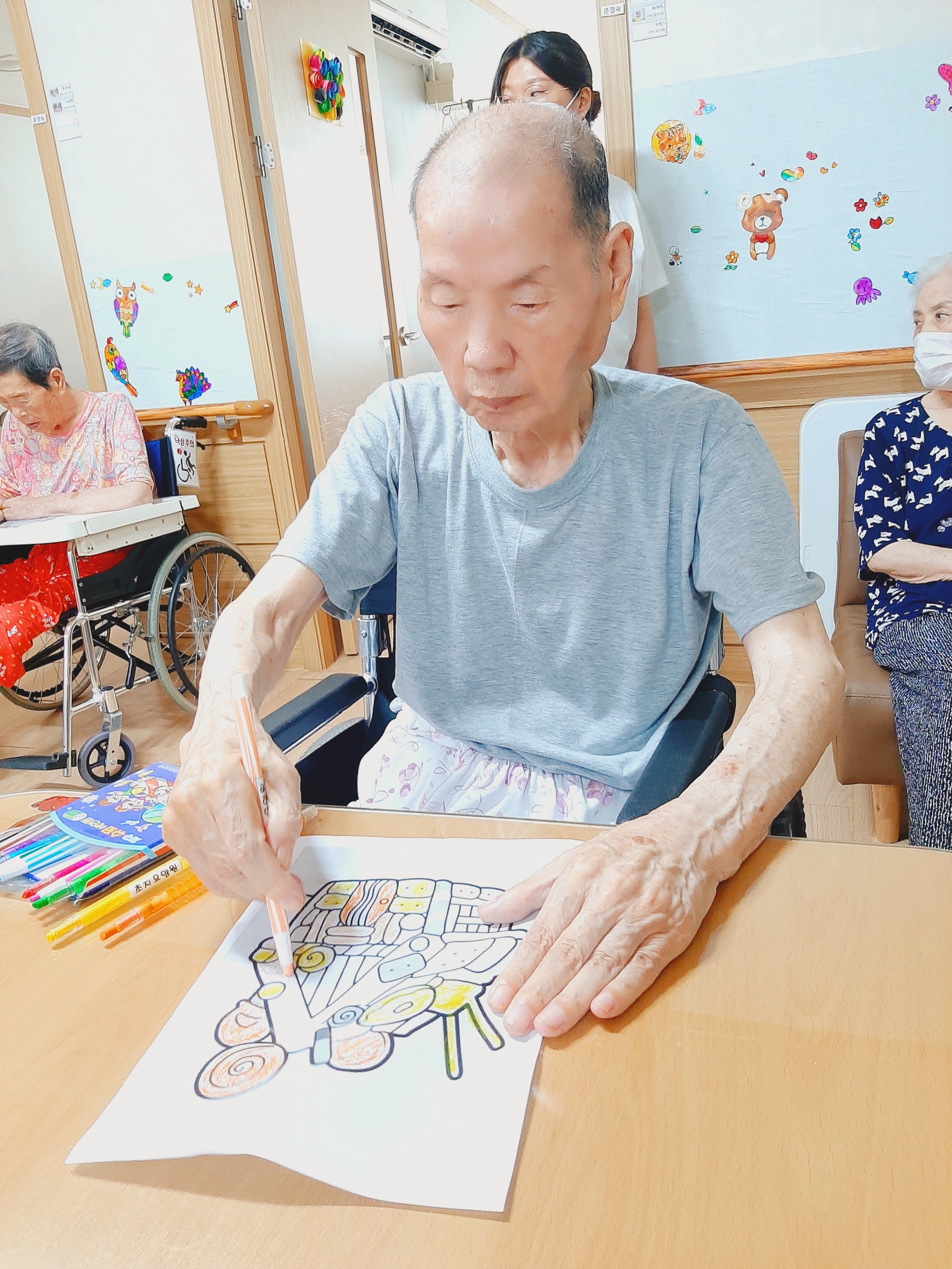 오늘 오후 여가프로그램 시간엔 어르신들이 흥미로워 하시는
