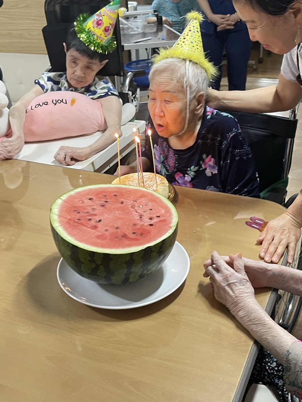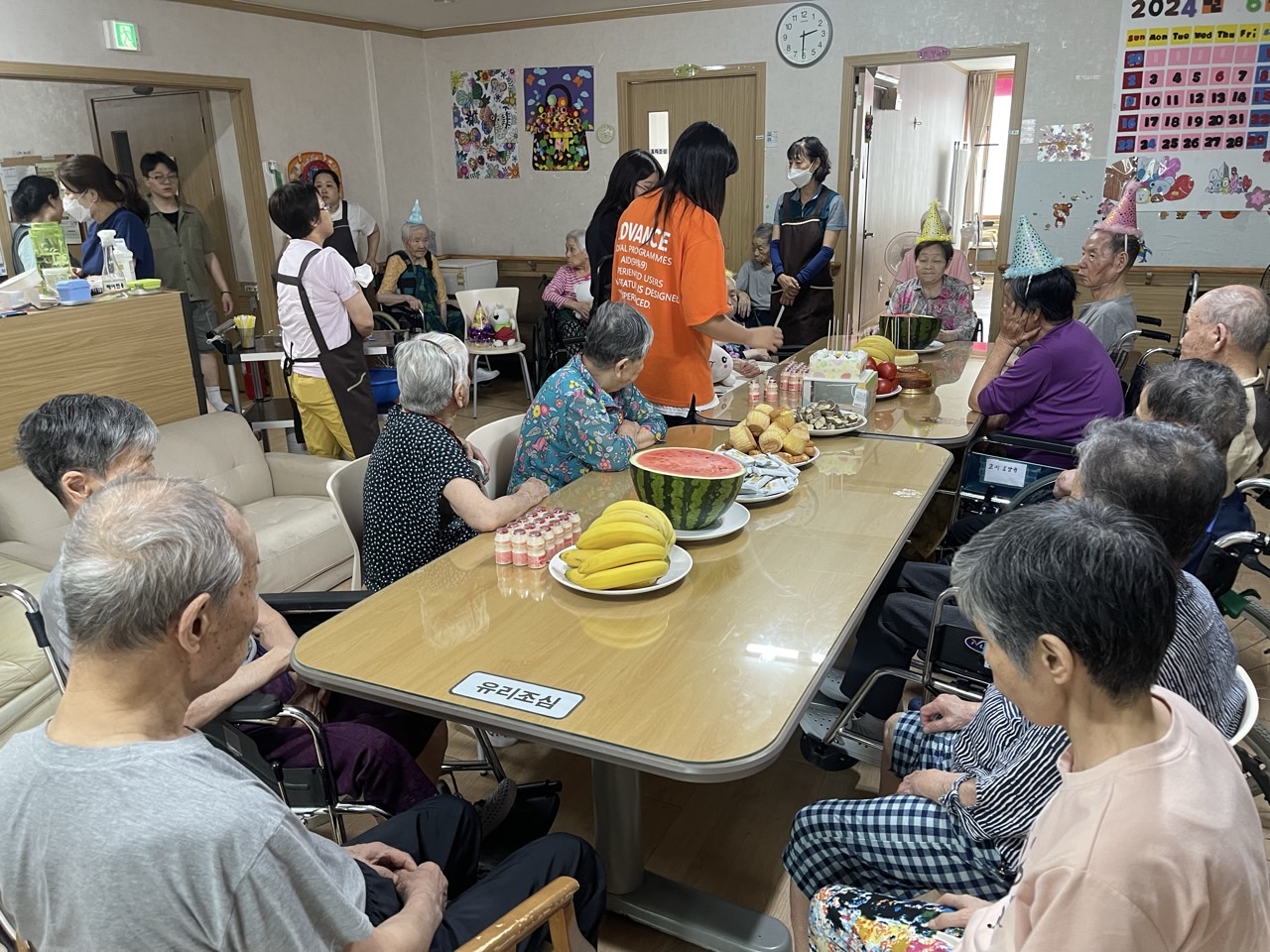 1. 어르신들의 얼굴을 물수건으로 닦아드린다.