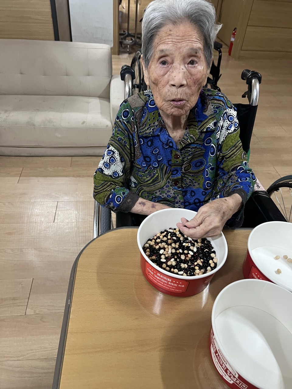 2. 각자 콩과 콩바구니를 나눠 드리고 콩을 고를수 있게 도와드린다