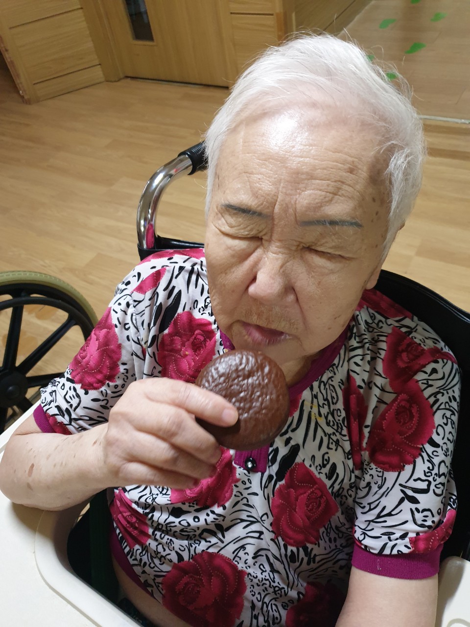 0818( 일) 초지어르신들 야간 간식은 탁경운어르신께서 초코파이를 쏘셨습니다 잘먹겠습니다 안녕히 주무세요~♡