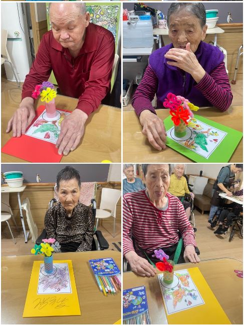 휴지속심에 색종이로 꾸며서 예쁜 꽃병을 만들고 모루로 꽃을 만들어 본다.