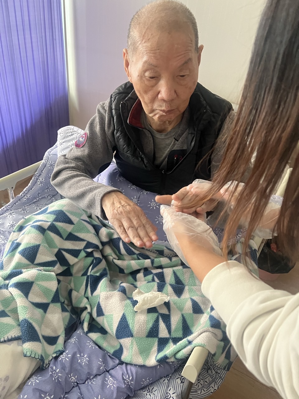 ② 손,발에 오일이나 로션을 바르고 위 아래로 주무른다.