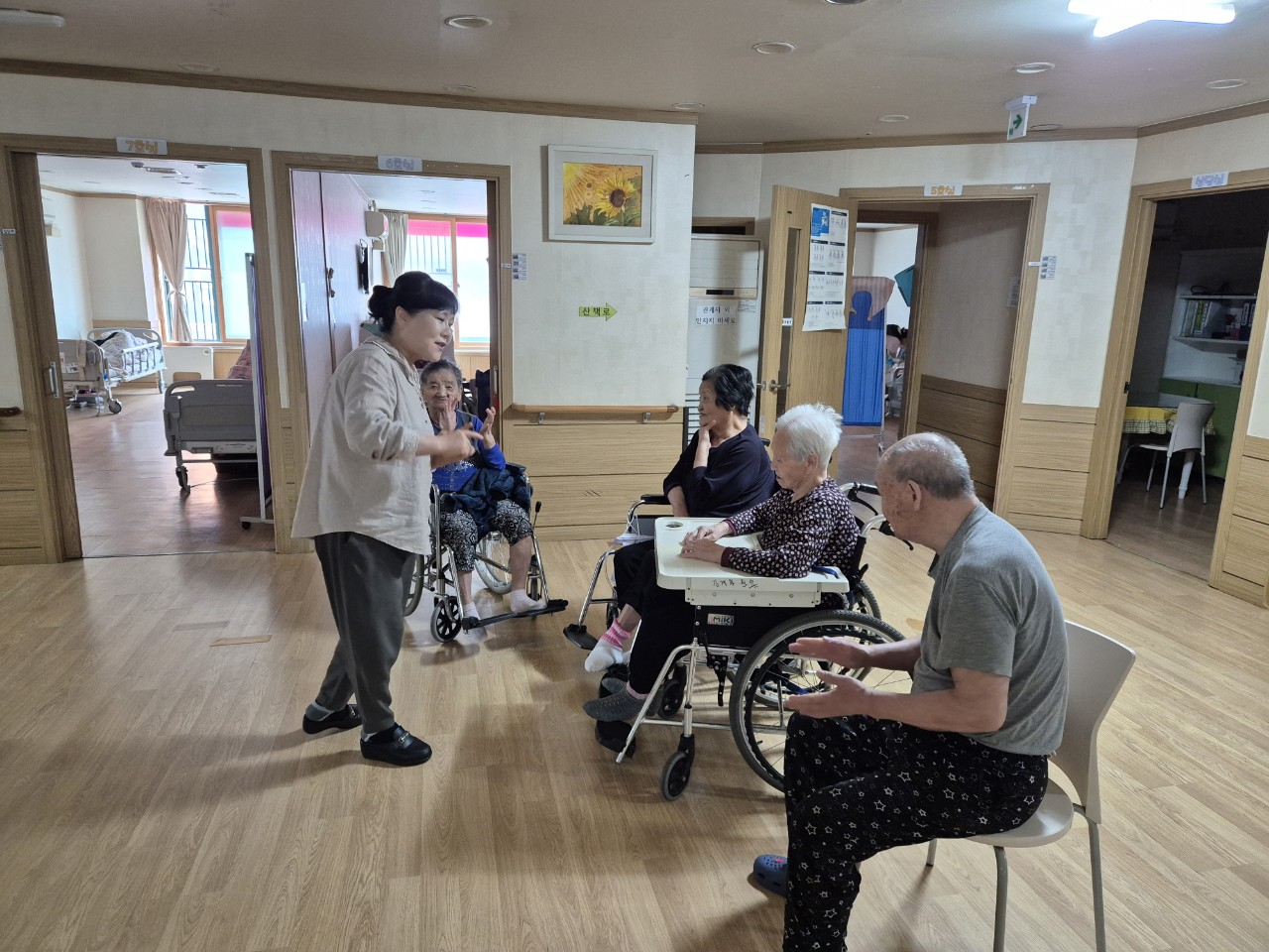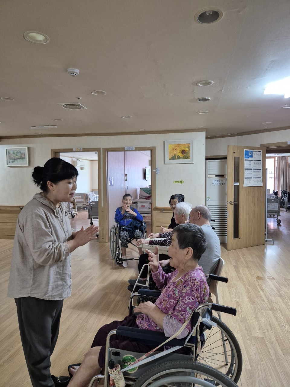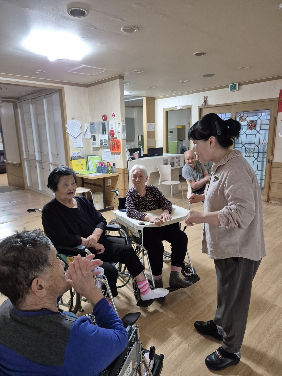 ① 어르신들을 중앙홀로 모신다. (모시기 힘든 어르신을 각 방으로 찾아간다.)