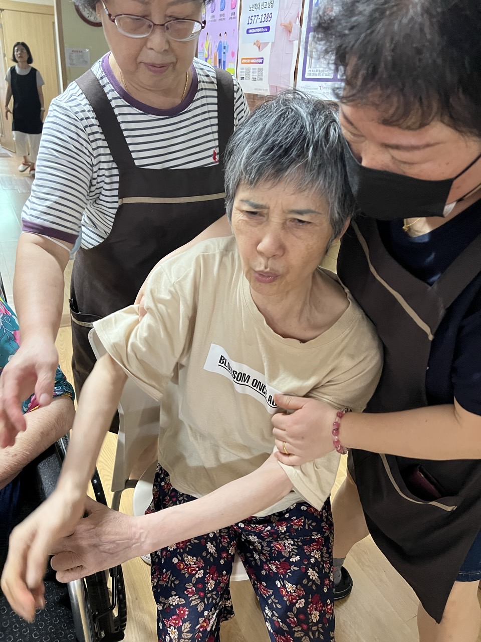 ① 어르신들을 중앙홀로 모신다. (모시기 힘든 어르신은 각방으로 찾아간다.)