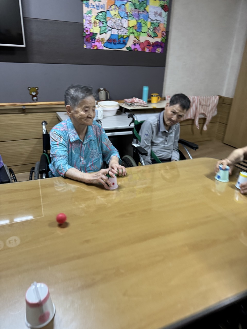 바닥에 놓인 컵에 공을 넣는 활동을 할수 있다.