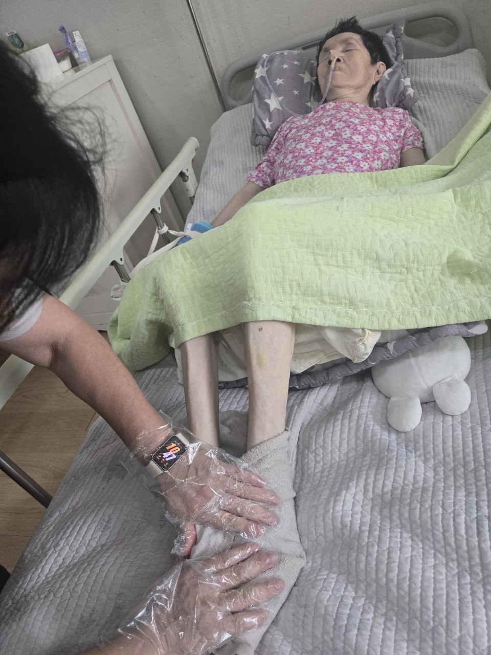 ⑤ 혈액순환을 위해 용천부위를 누르며 마사지한다.