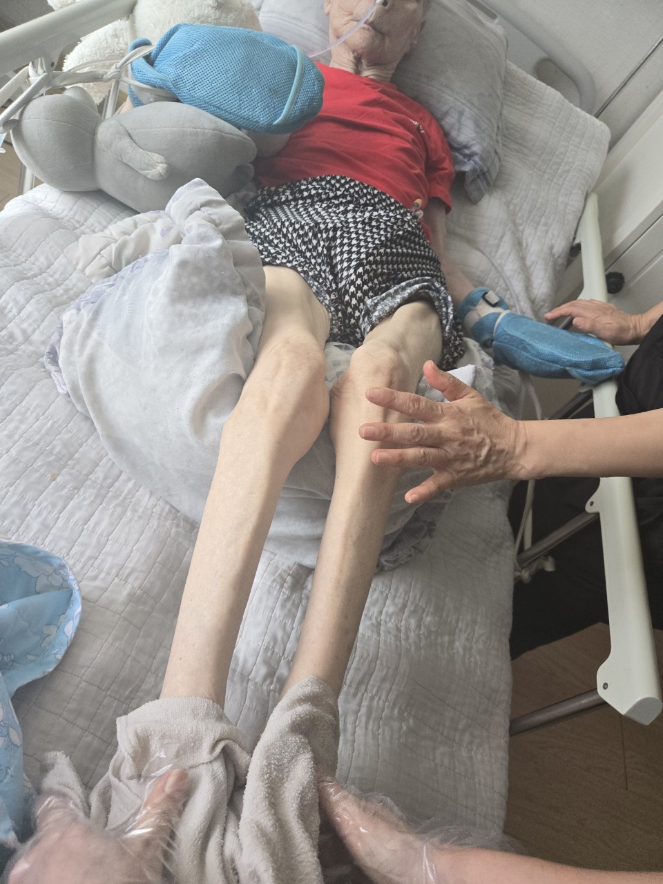 ⑥ 무릎 위 10㎝ 까지 마사지를 하여준다.
