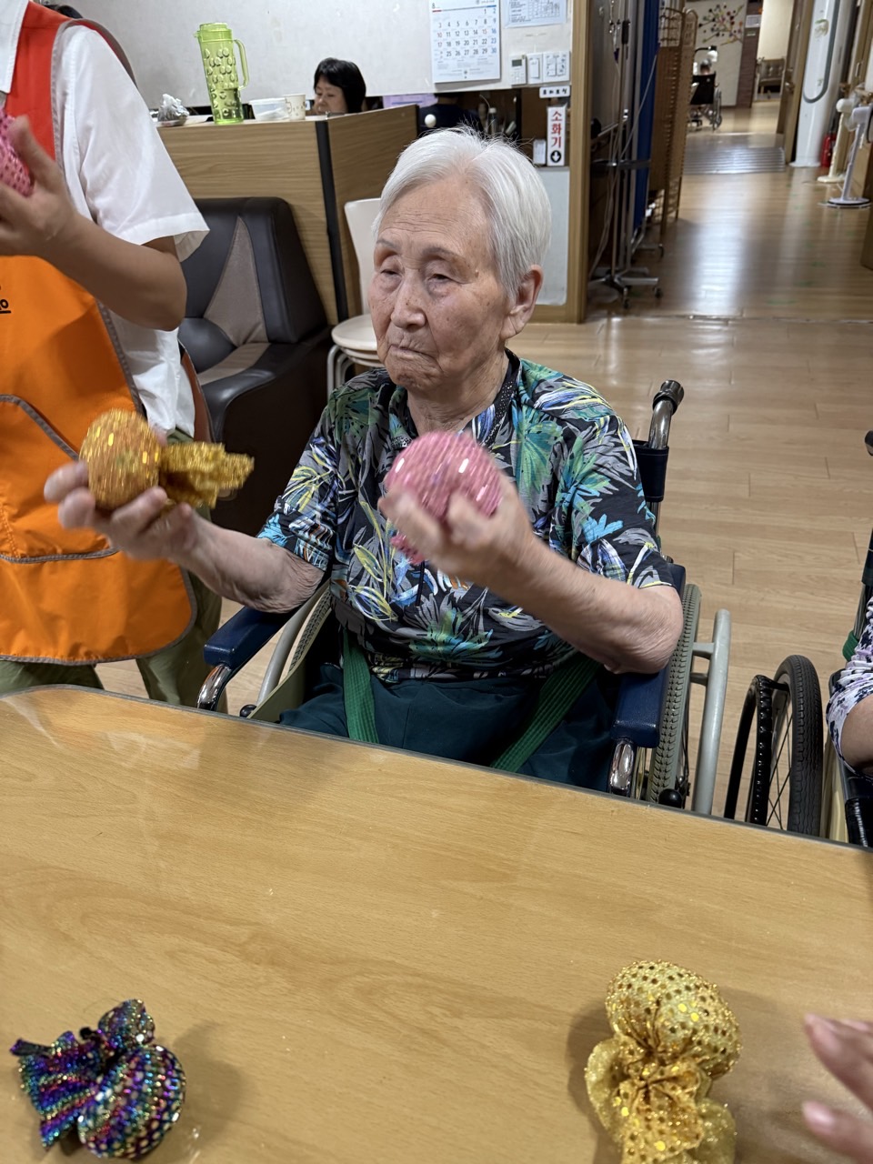 ① 어르신을 중앙홀로 모신다.