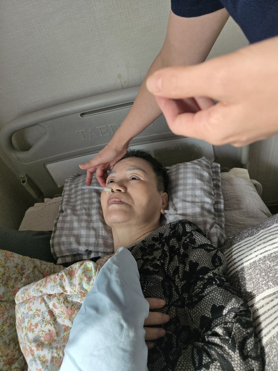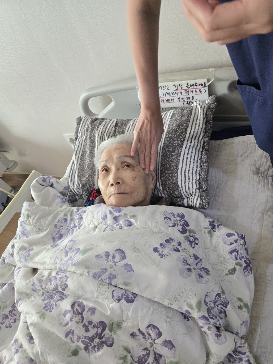 ② 진행 : 코에 오일 냄새를 맡게 하고, 관자놀이에 롤링기법으로 마사지를 해준다.