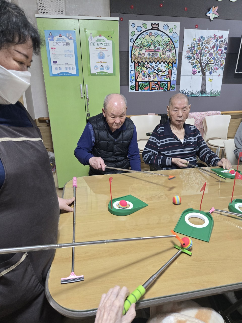공을 쳐서 골프홀에 넣으며 직선·반원·지그재그 길을 따라가는 신체협응 활동을 할수 있다.